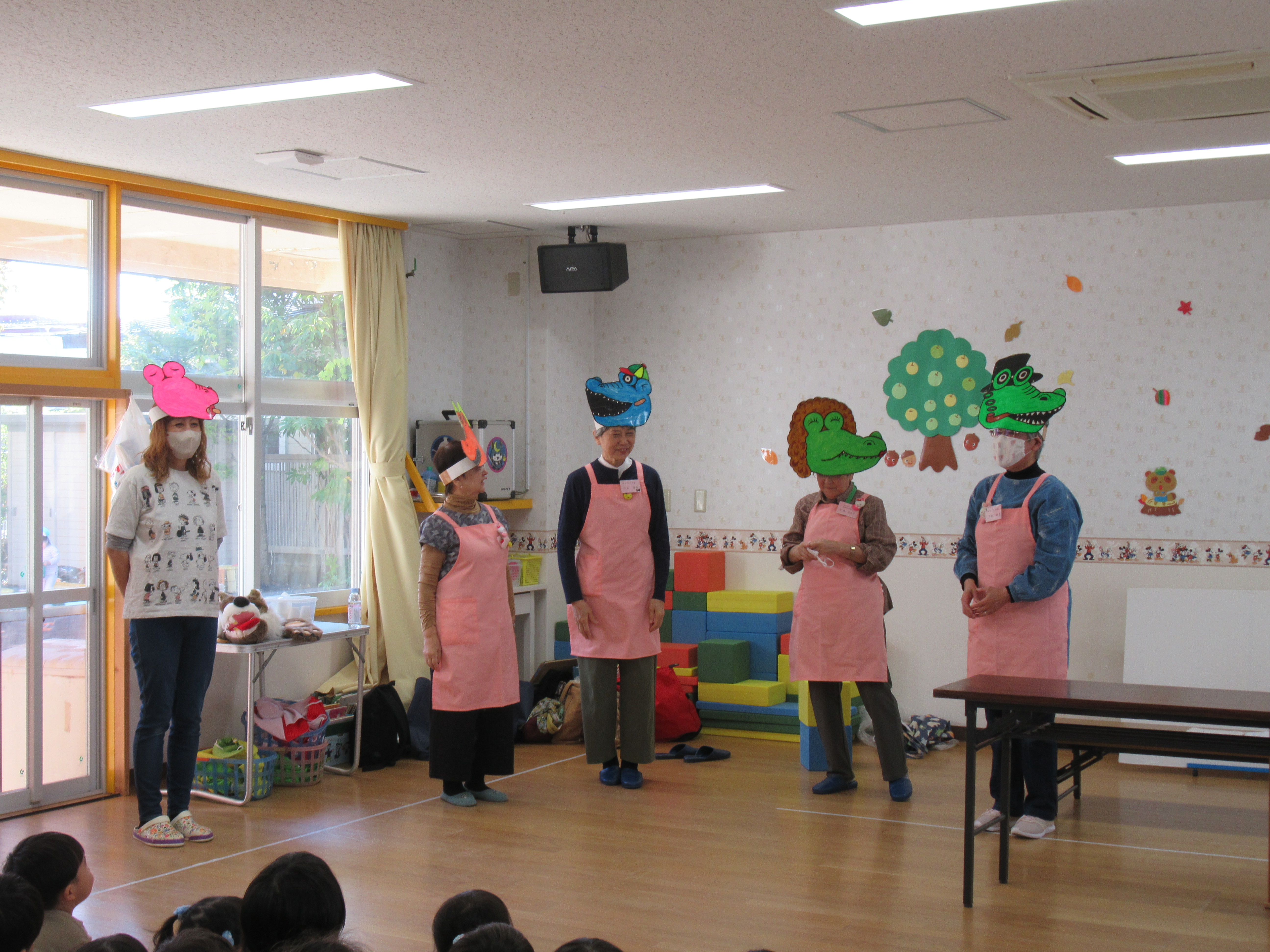 今日は、ひまわりこども園に「中央図書館明徳館おはなしの会」のボランティアの方々がいらしてくれました‼