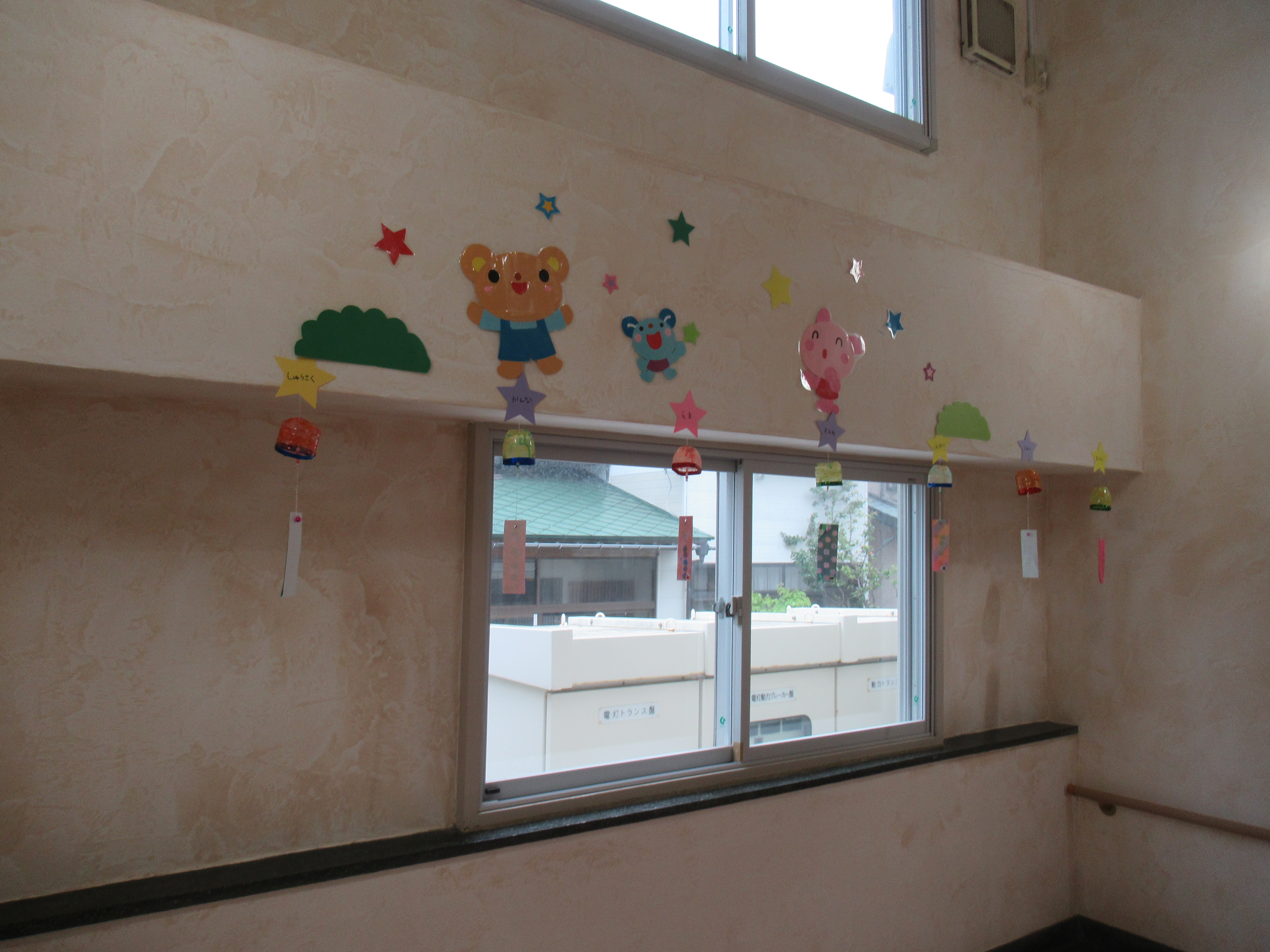 園内もなつまつりの雰囲気が感じられるように子どもたちの作品を飾りましたよ~🎋✨