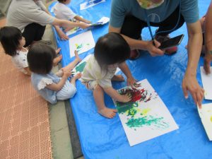 今日は、お外でダイナミックに「ボディペインティング」を楽しみました。