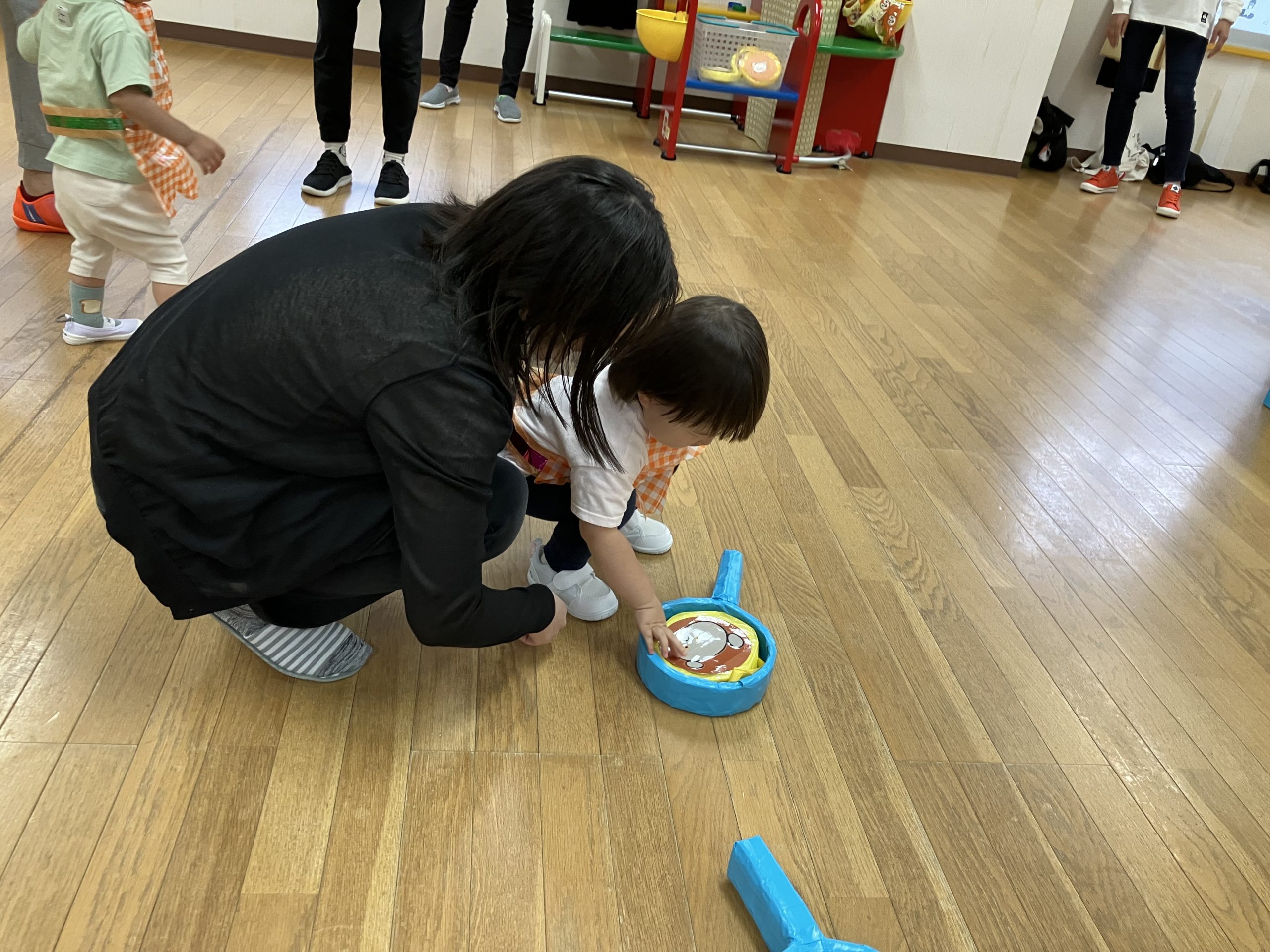 上手にホットケーキを重ねることができ、お家の方も「おぉ~!」と、びっくりの様子でしたよ!