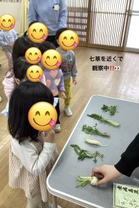 そこで、実際に「七草」に触れ、少しでも七草の雰囲気を感じられたらと思い、給食へ取り入れることにしました!