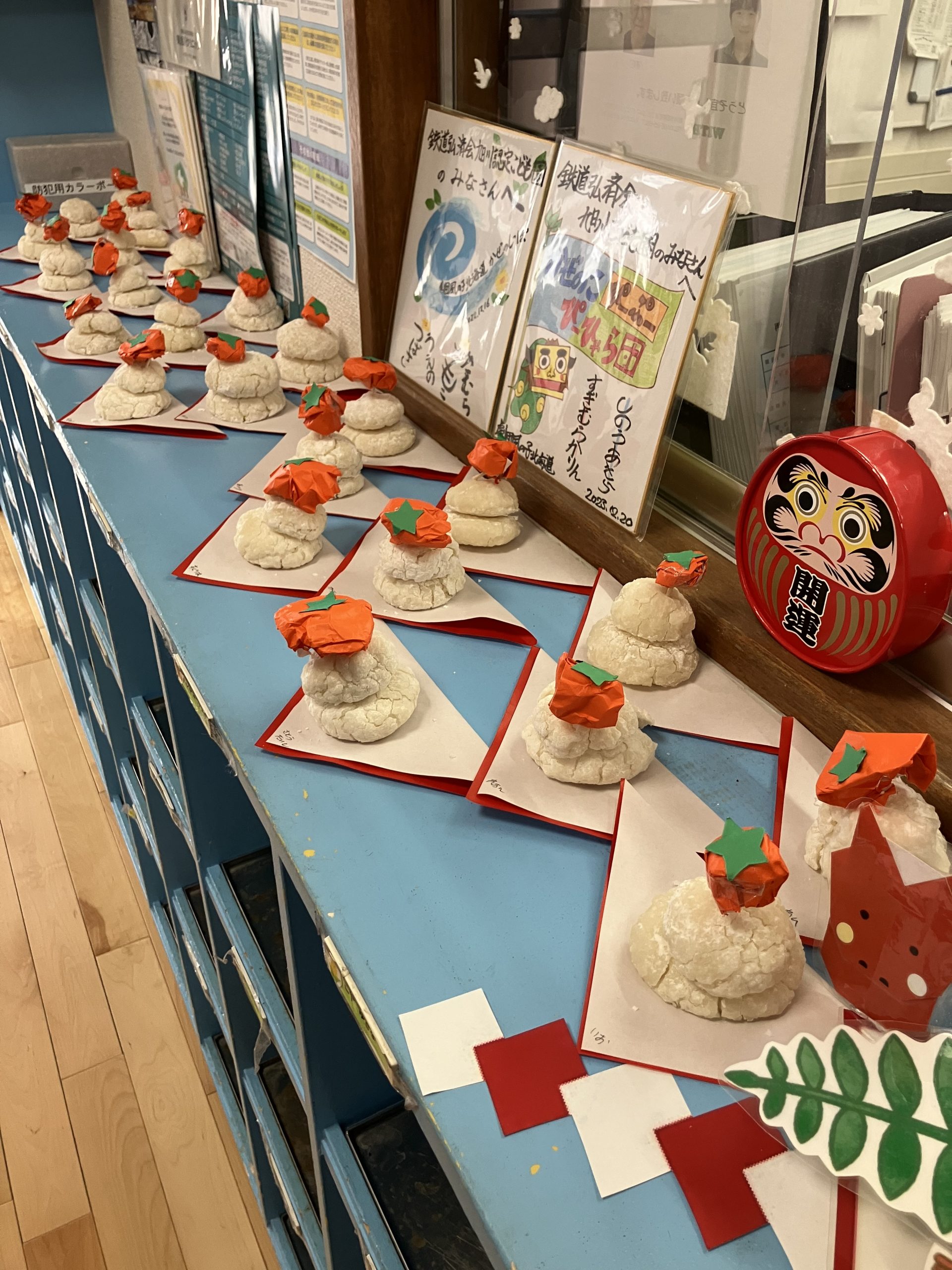 今年も、みんなでついたお餅を、年長組が一人ひとつ鏡もちを作り 新しい年を迎える準備をしました。