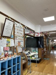 また 昨今、目にする機会も少なくなった縁起物の『繭玉作り』も行い こども園の玄関は一気に お正月飾りでいっぱいです。