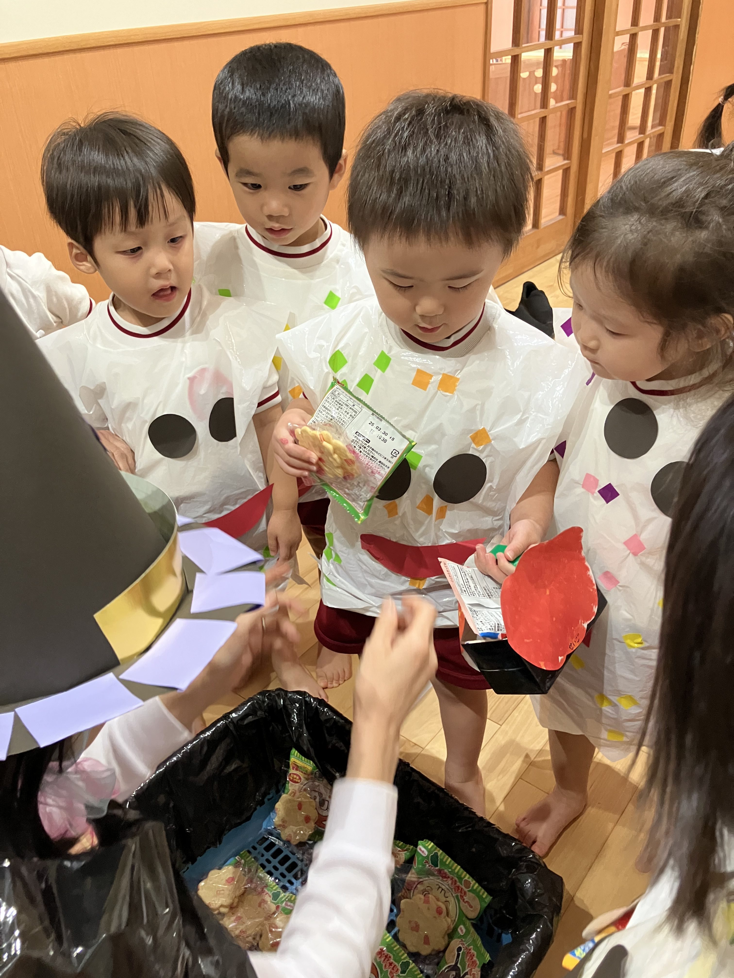 小さいお友達には、つばめ組のお兄さんお姉さんがそれぞれ手渡しでお菓子をあげています♡
