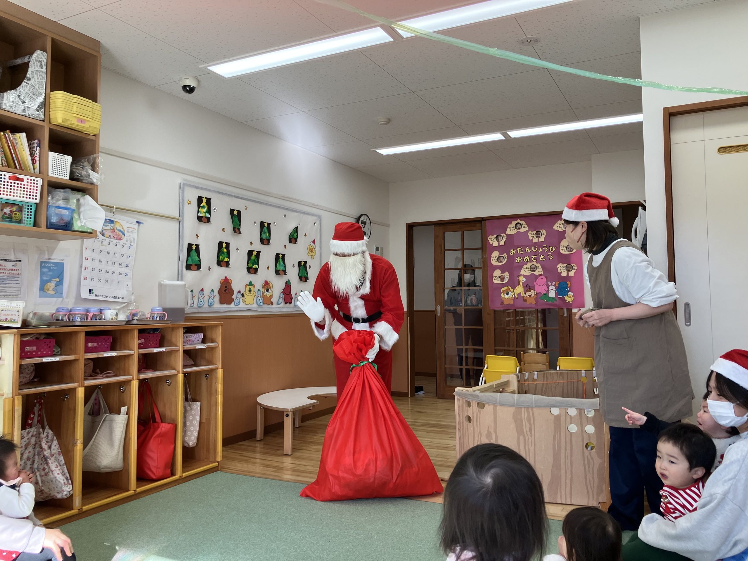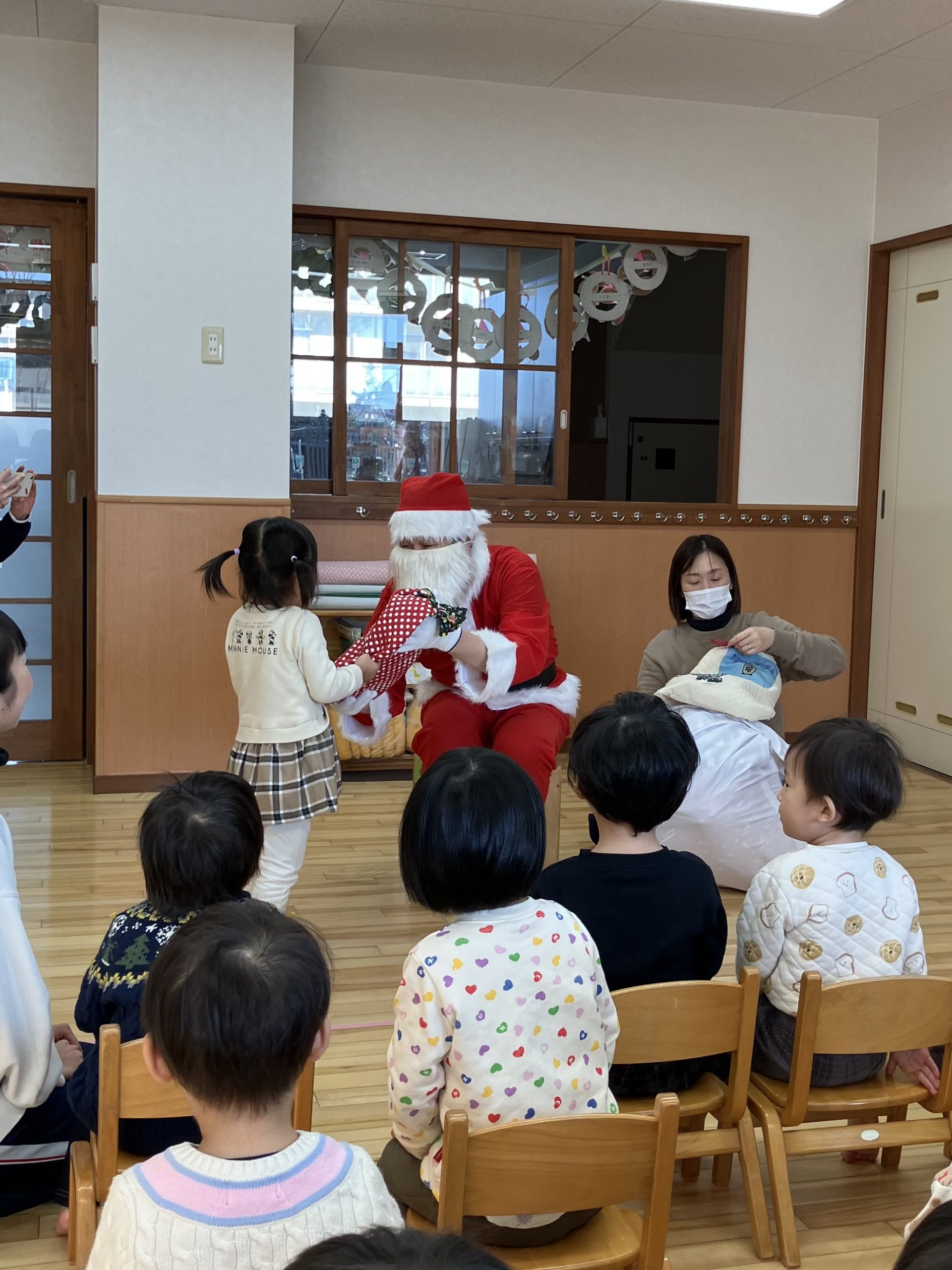 みんなしっかり自分のプレゼントをもらい、サンタさんとの記念写真も撮りましたよ♩