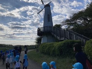 「この風車大きいね!」お芋畑まであともう少し(^^)/