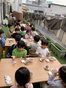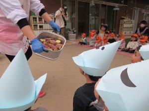 先日収穫したさつまいもを蒸して、調理してくれました。「おいも美味しそう♡」お昼ご飯がより楽しみになったようです!