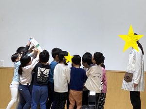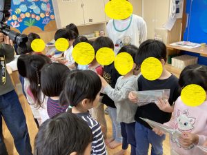 やま組さんとかわ組さんからうみ組さんへ、プレゼントを渡しました!「うみ組さん、たくさんあそんでくれてありがとう!」「1年生になっても頑張ってね!」と一人ひとり気持ちを込めて渡しました☆彡