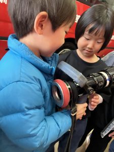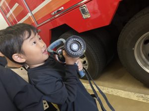 消防士さんが使用する道具を見せてくれて、実際に触らせてもらいました。