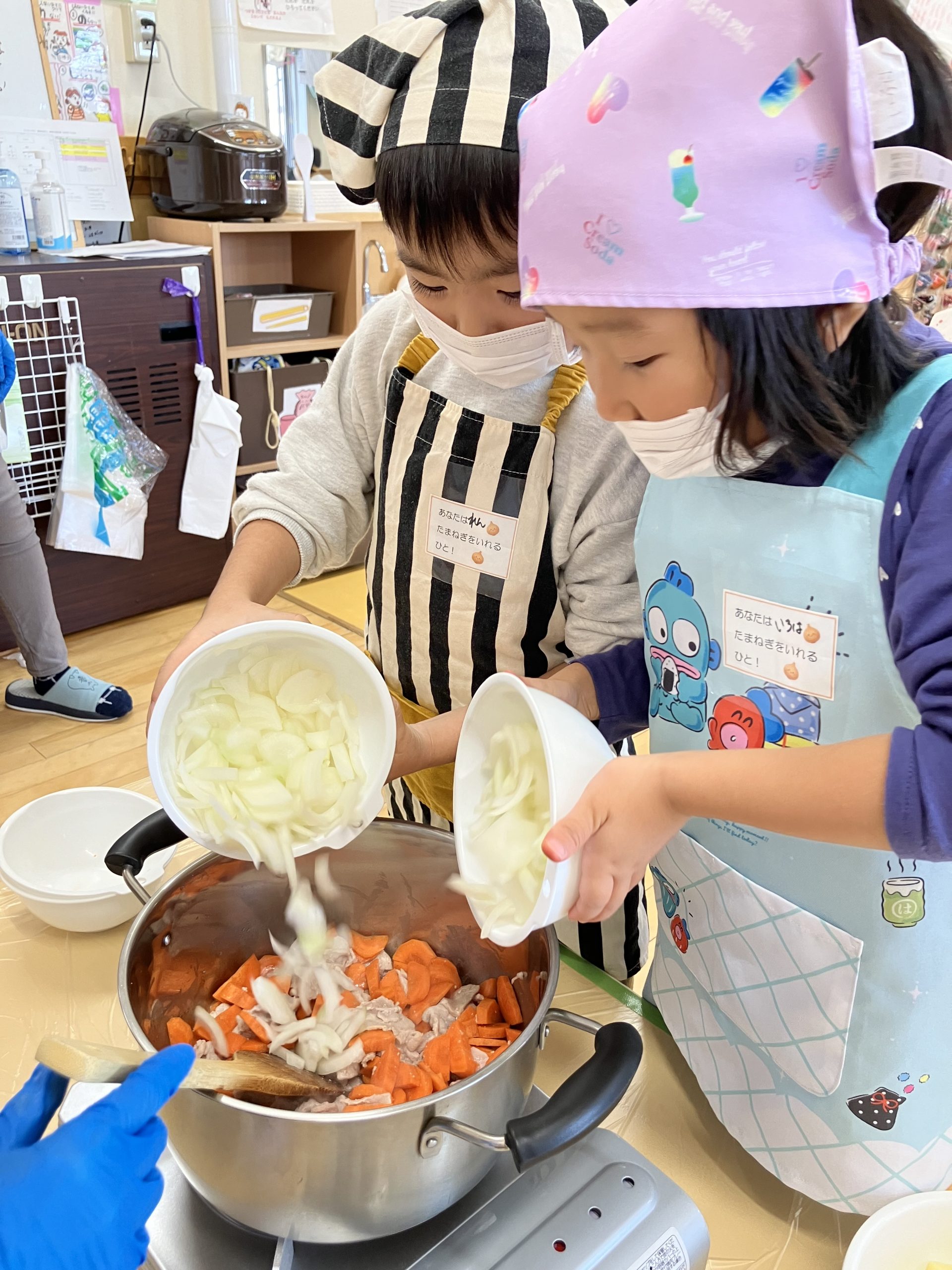 次はおなべにいれ隊!たまねぎ係といため隊!!