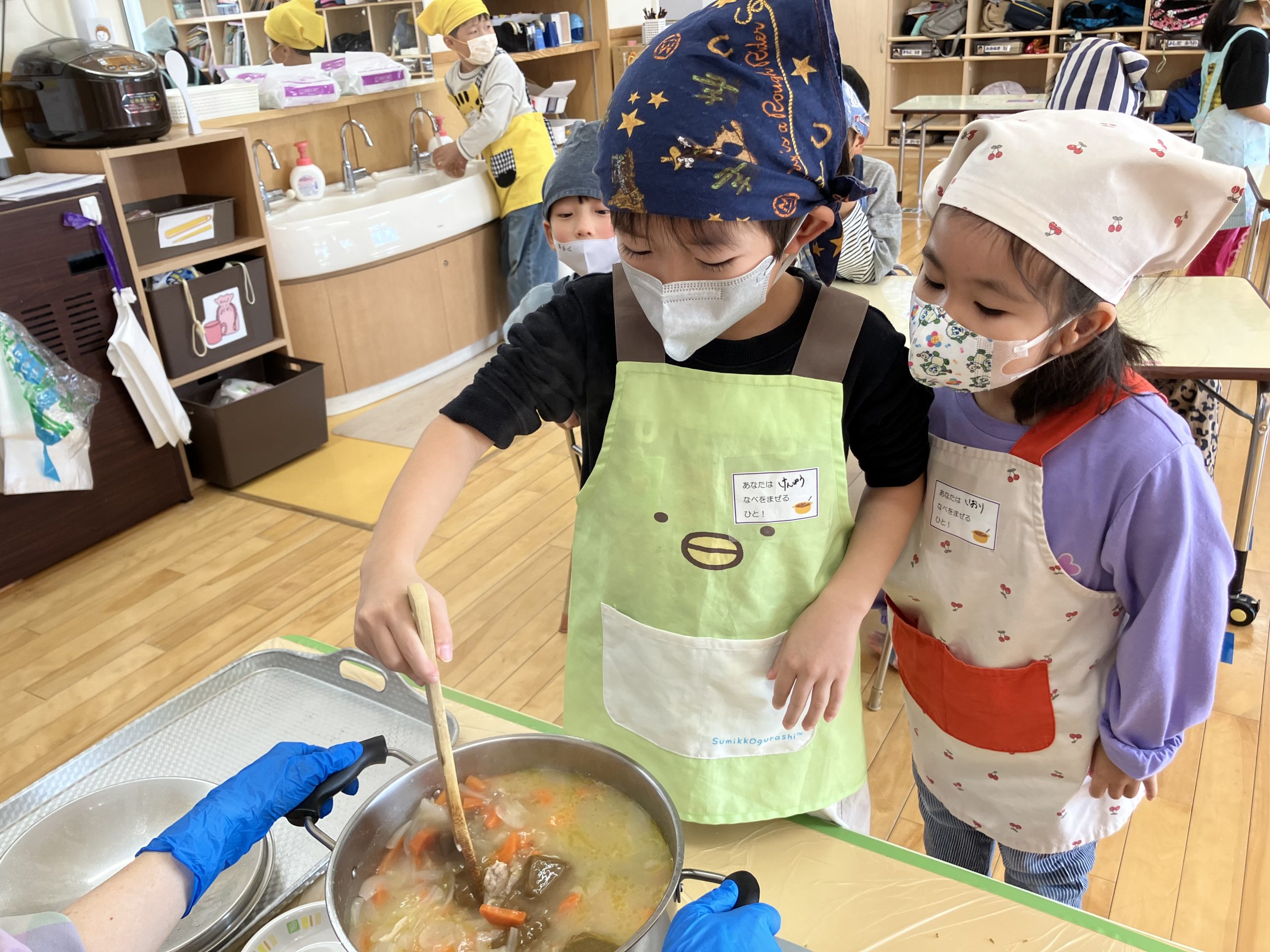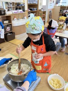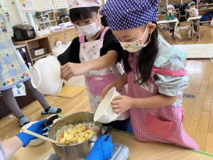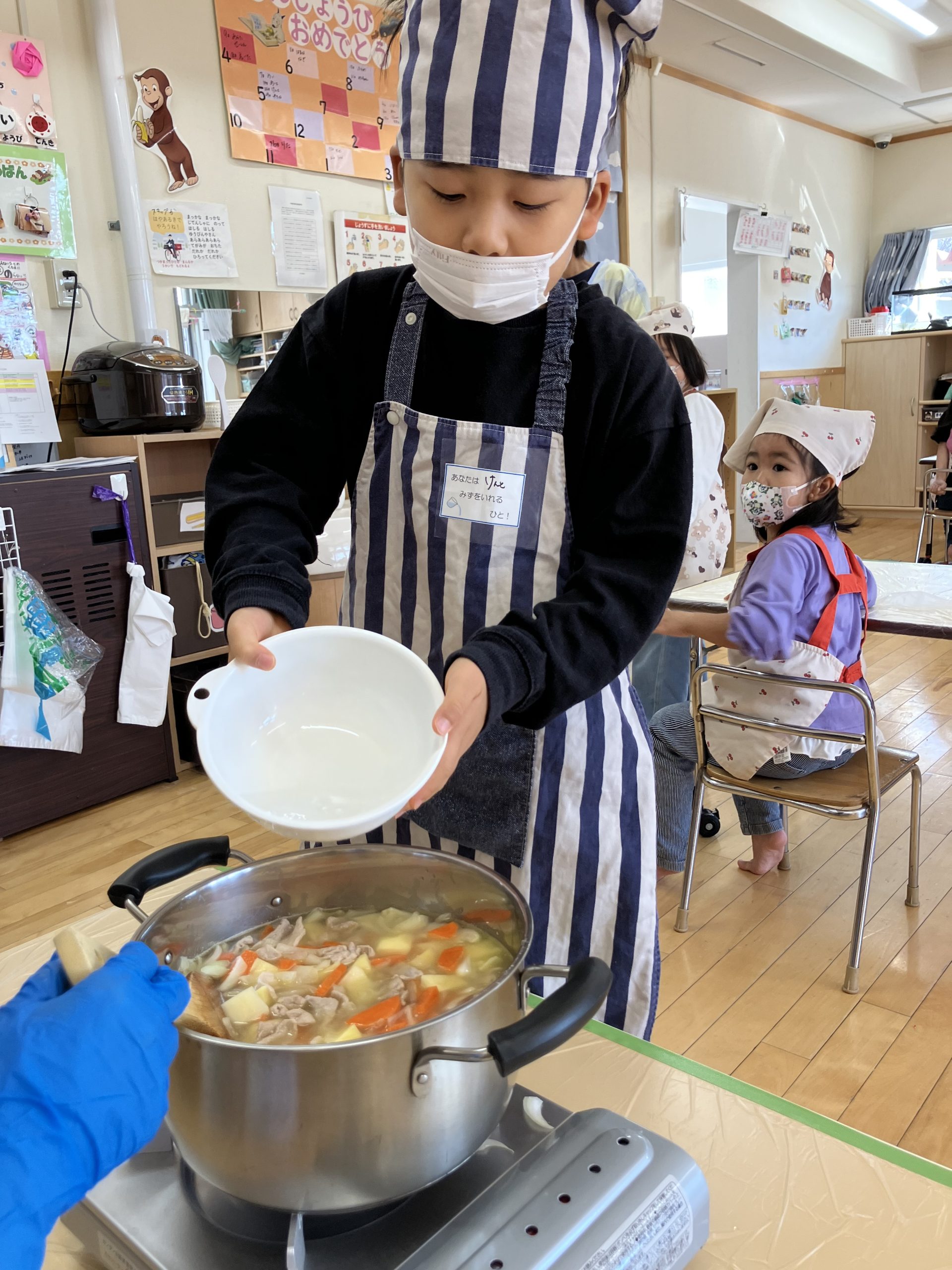 次はおなべにいれ隊!じゃがいも係のあとは