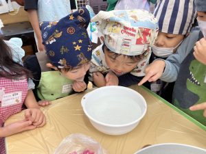 「グミは沈んだけど…みかんは浮いた!!」