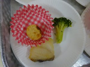 この日のメニューは「たらの甘味噌焼き」「ブロッコリーのしょうが和え」