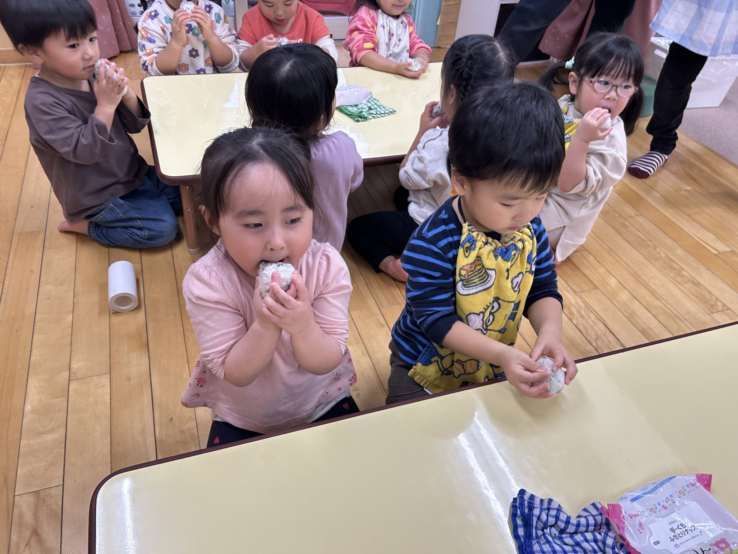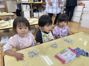 11月17日、2歳児うさぎ組で、おにぎりを作りました。