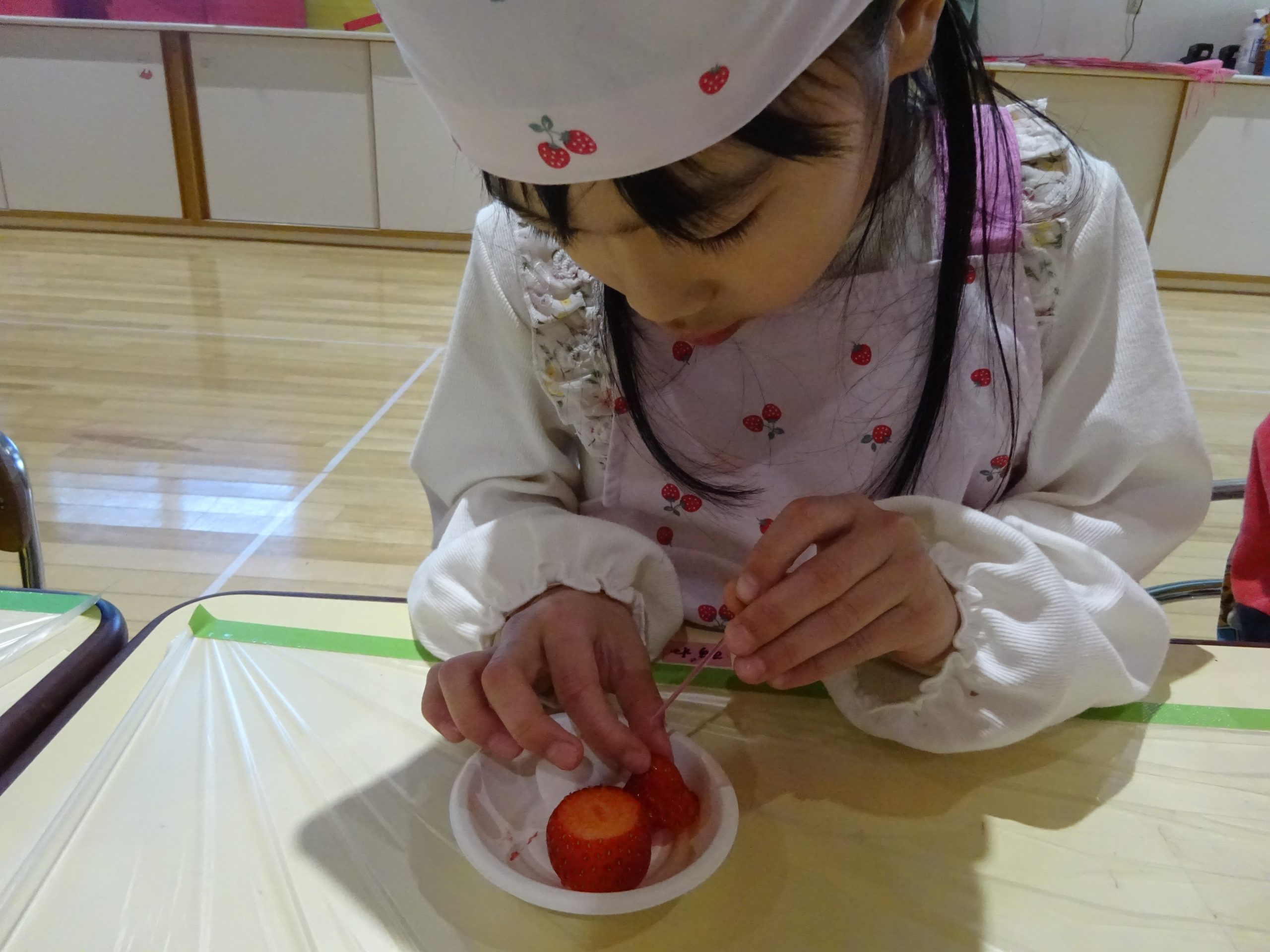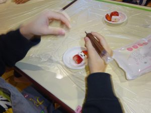 さらにいちごとマシュマロで「いちごサンタ」作り☆