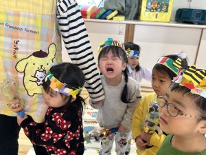 と張り切っていましたが、やっぱり鬼と対面すると泣きだす子が多かったです。
