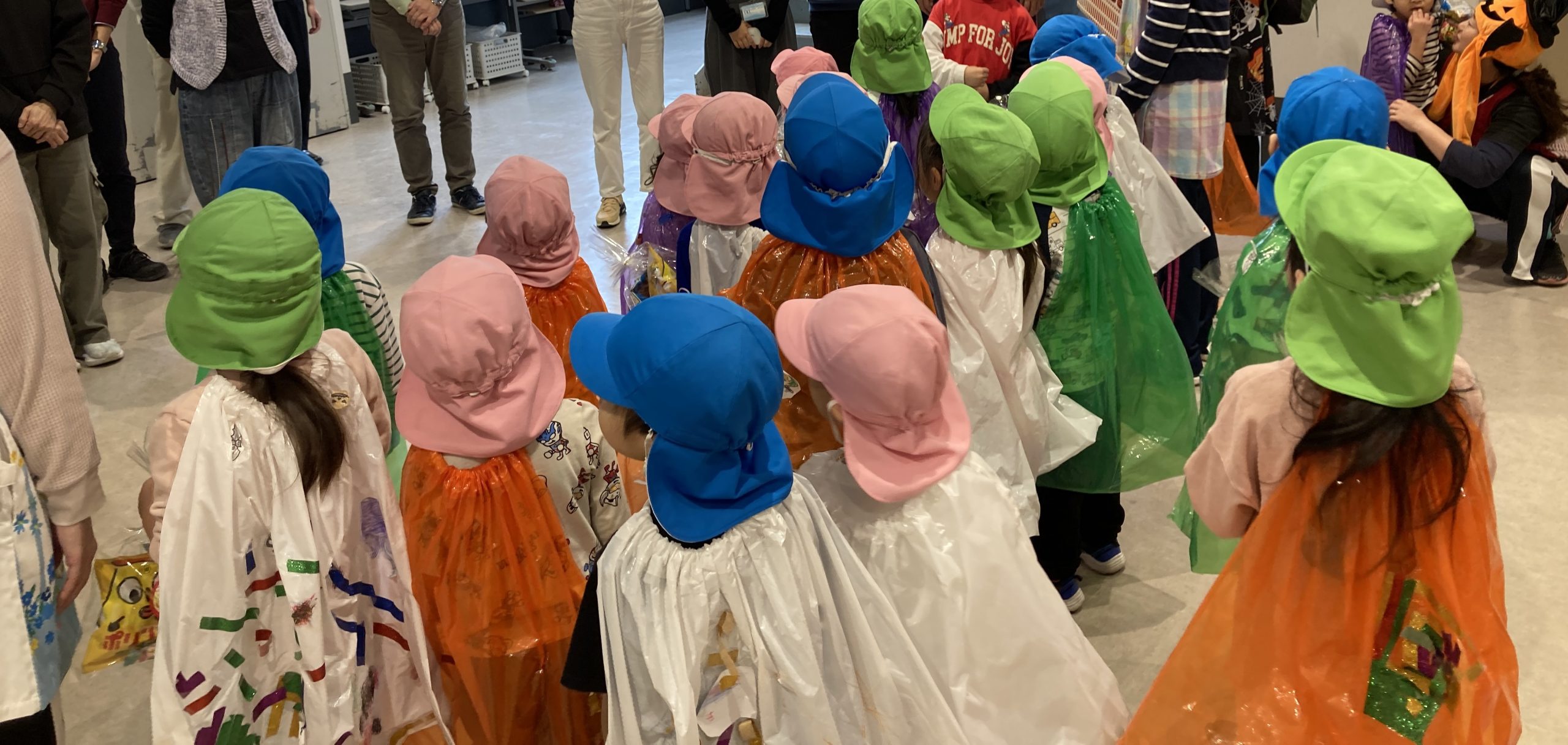 10月31日、ハロウィン散歩で園の周辺を散歩しました。自分達で作ったコスチュームを身にまといウキウキしてでかけています✨