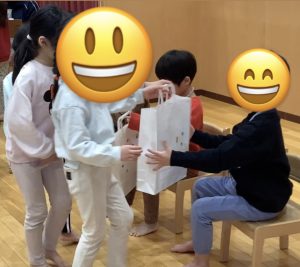 在園児からのプレゼントは4歳児が代表して渡しました。