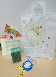2歳児と3,4歳児は、子どもたちと話し合いながら製作を進めてきました。5歳児の一人一人に合った色を考えていました。