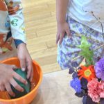 花を生ける土台部分のオアシスがスポンジのように水を吸収することの不思議さやざらざらした触り心地を感じながら楽しんでいました。