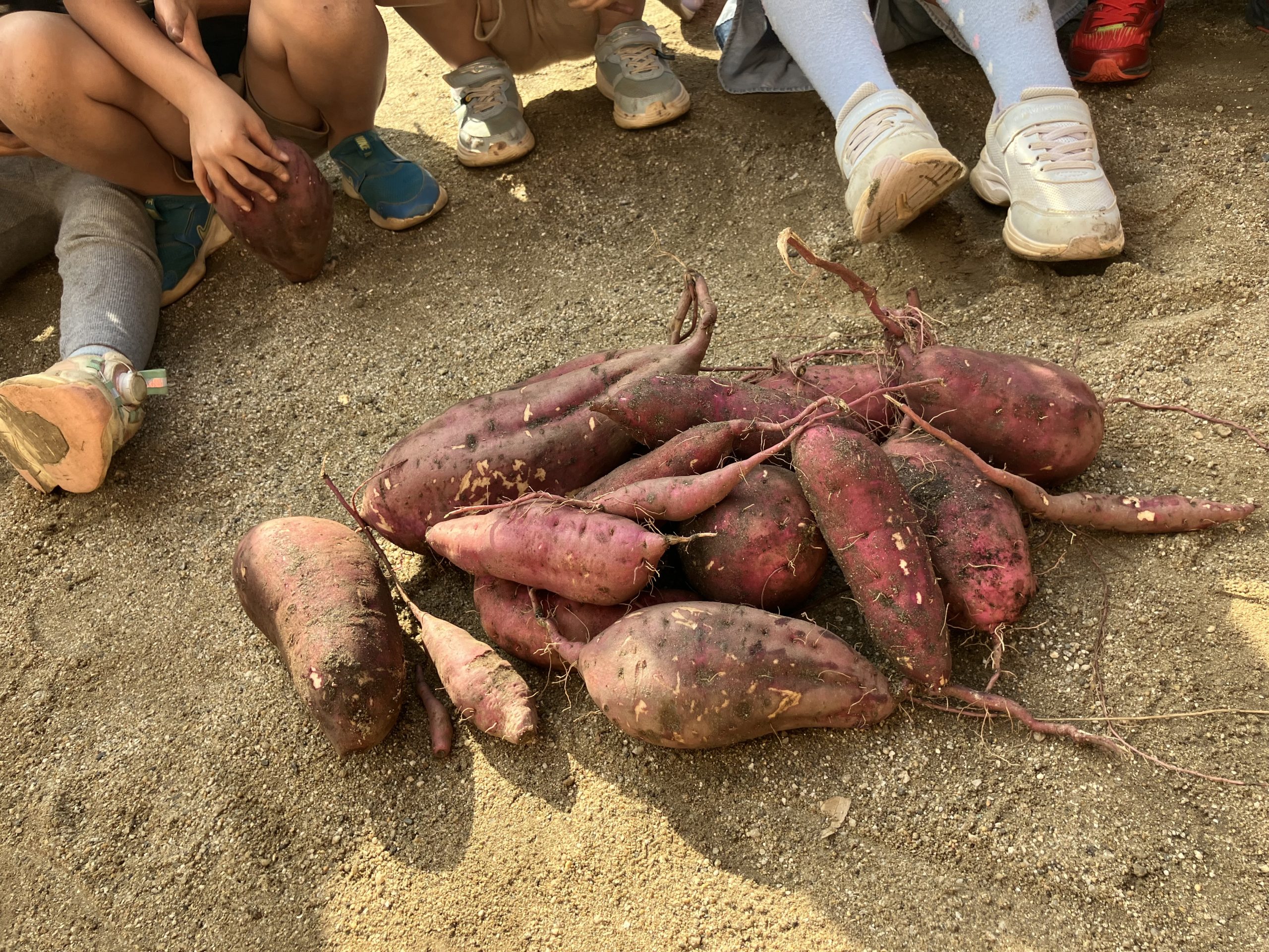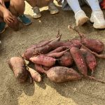 10月14日 年長児が畑の芋ほりをしました。沢山の大きなさつま芋を掘ることが出来 掘ったお芋は一人2個づつ持って帰ることができました。「焼き芋にしたいな」「天ぷらも美味しいよね」など会話もはずむ子ども達でした