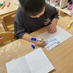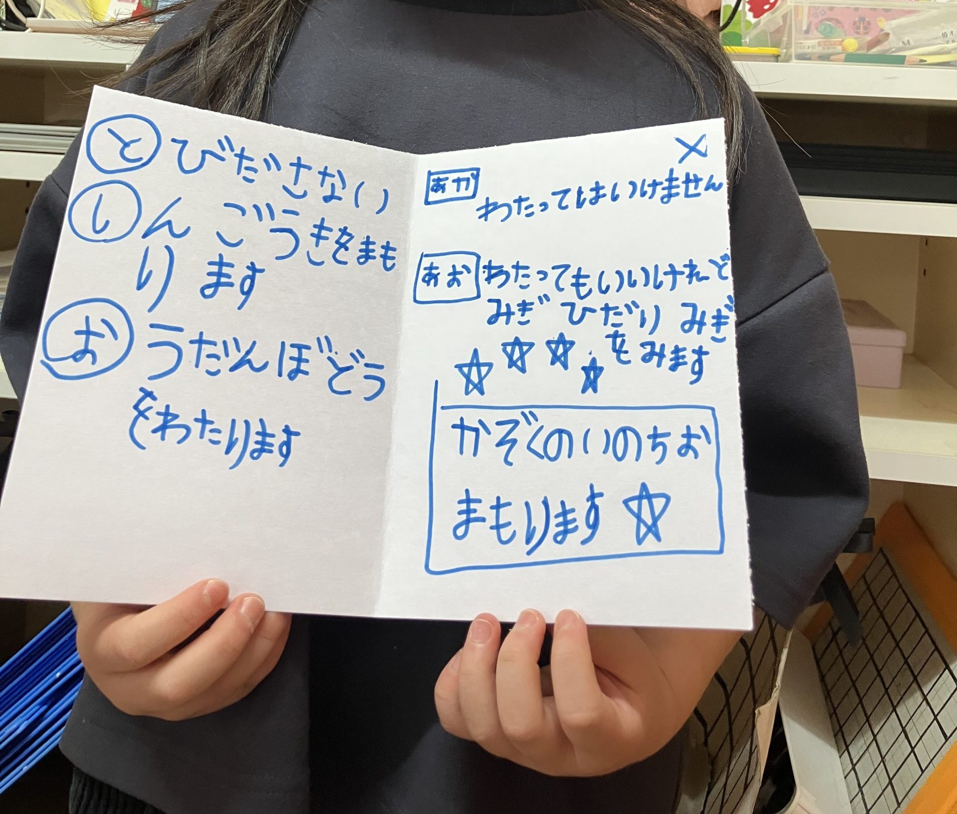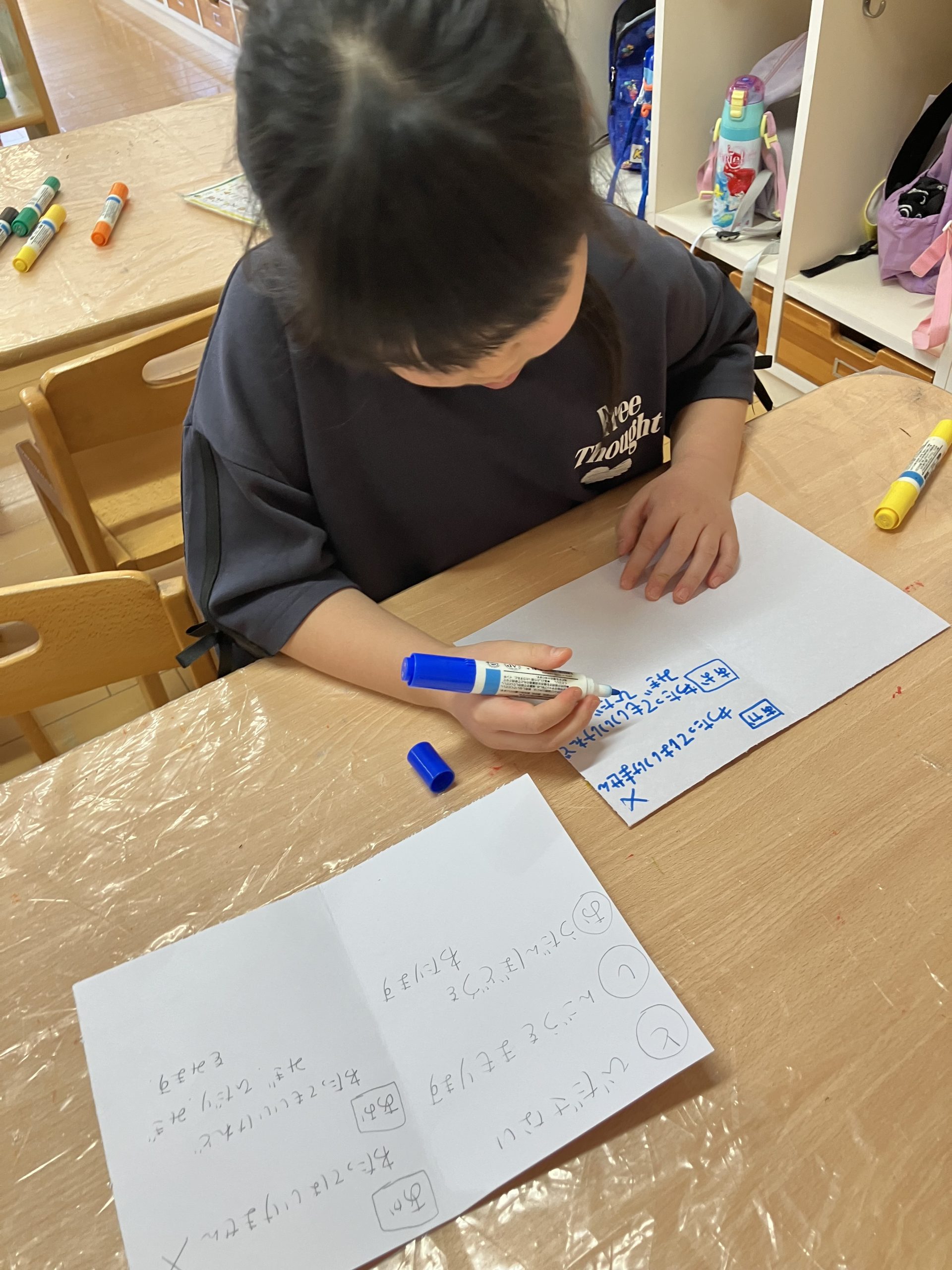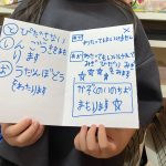 部屋の戻ってから、教えてもらったことをお家の人にも知らせたいと紙に書く子供もいました。