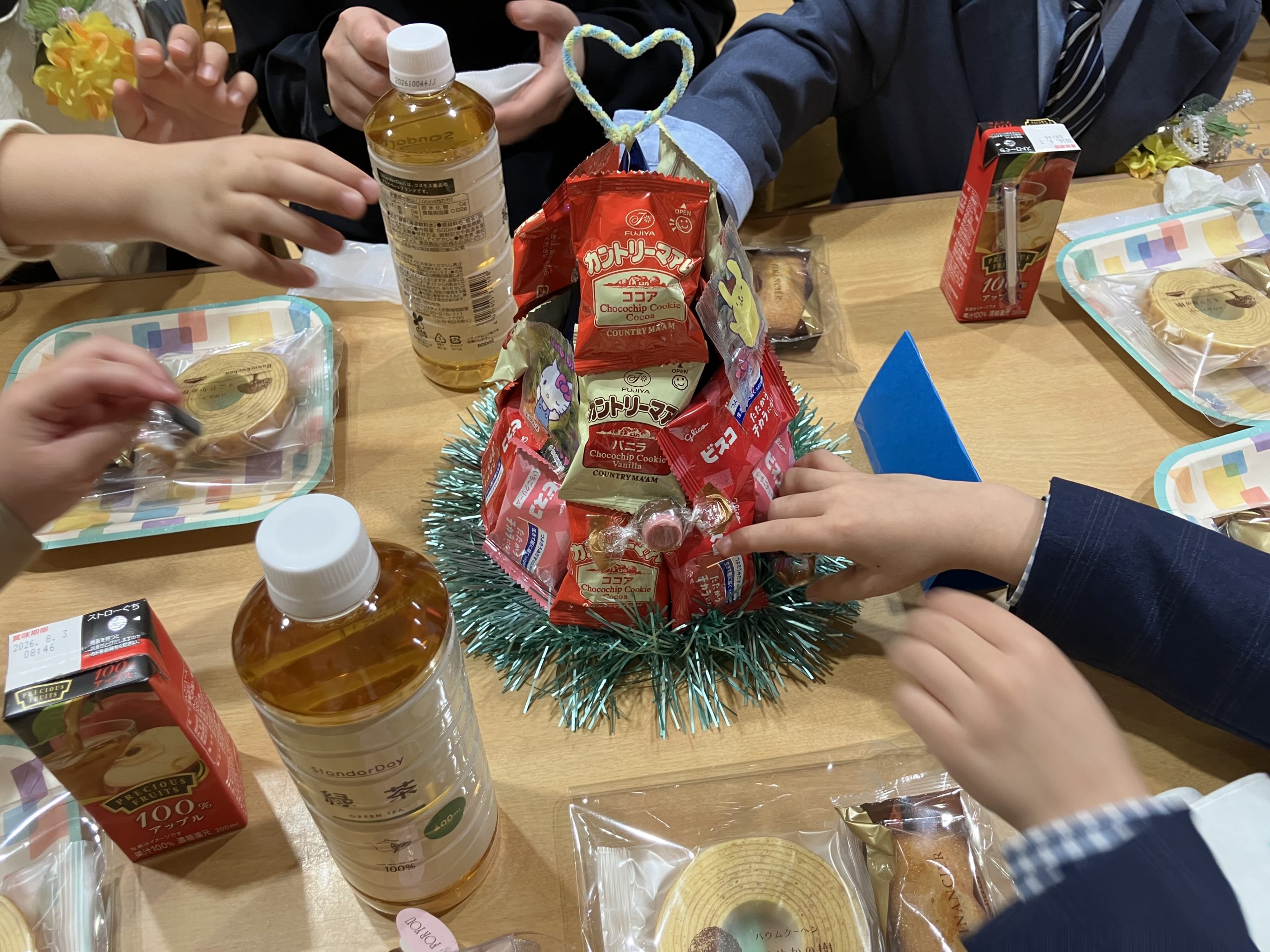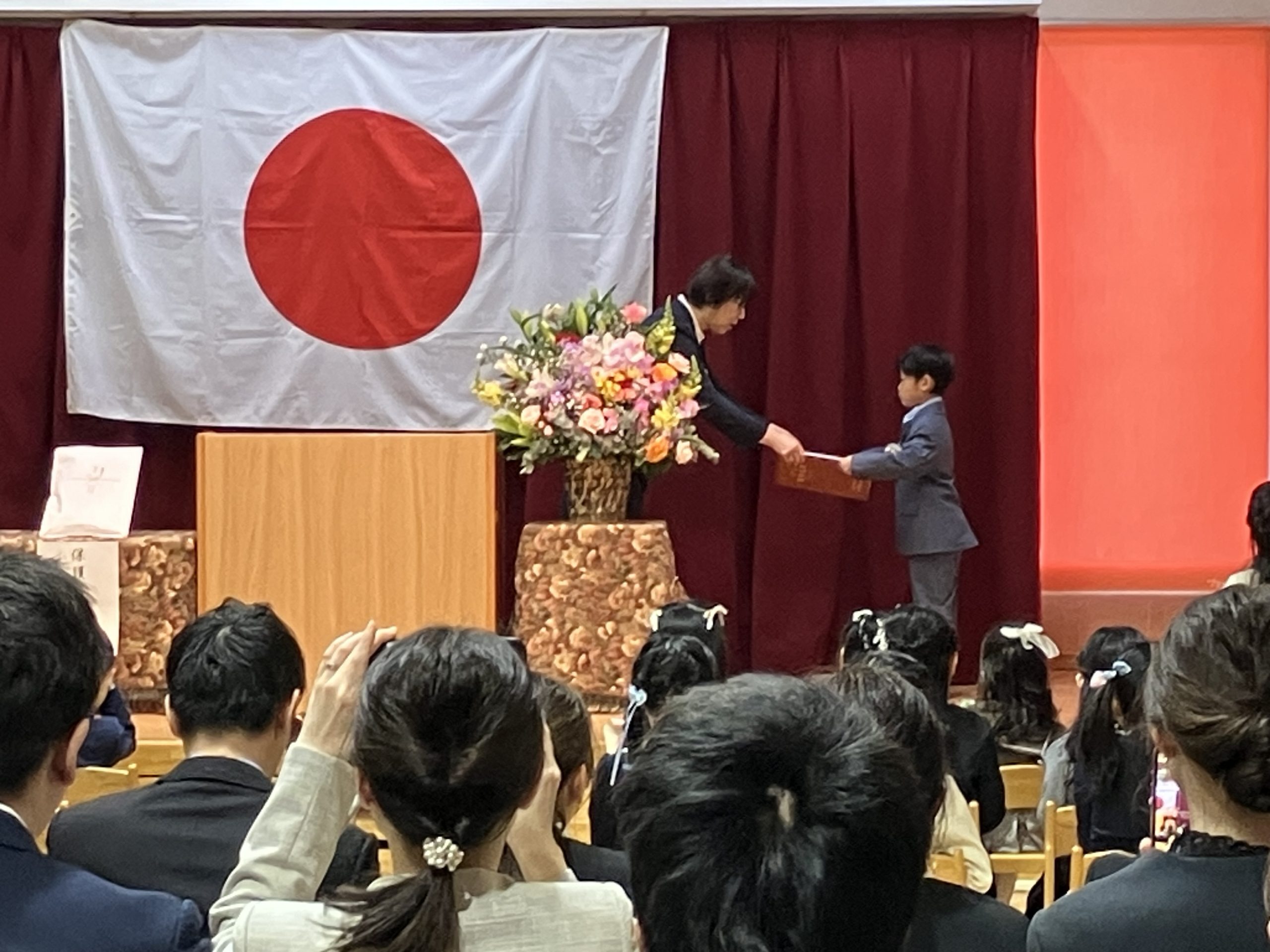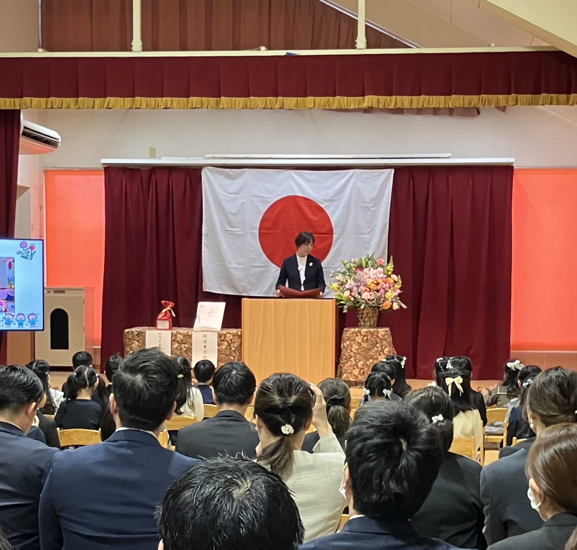 その後は、保護者会主催の謝恩会が遊戯室でありました。式の時とは違い 笑顔でアットホームな雰囲気でした。