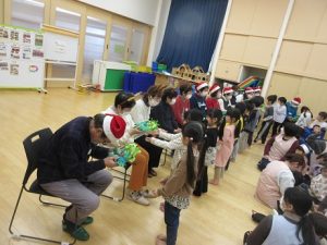 今日はほほえみくらぶの皆さんとのクリスマス会でした。3歳児、4歳児、5歳児のお友だちが参加し、歌やピア二―演奏、オペレッタを披露してとても楽しい会になりました。
