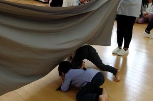 地震と火事のときの避難を体を動かして楽しく学びました。