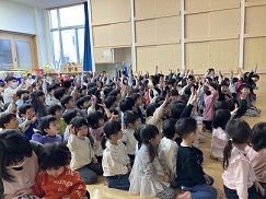 2択のクイズでよく考えながら「はーい!」と元気いっぱいに答え、盛り上がりました。
