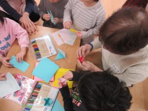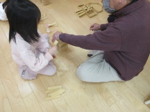ほほえみくらぶのみなさんとカプラや折り紙などをしてあそびました。「しょうがっこうはあるいていくよ!」「ランドセルはむらさきだよ」などと話したりして、楽しんでいました。
