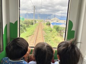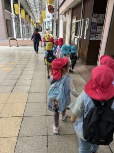 うみ組、そら組の子ども達も乗車する為に、駅まで頑張って歩きました。