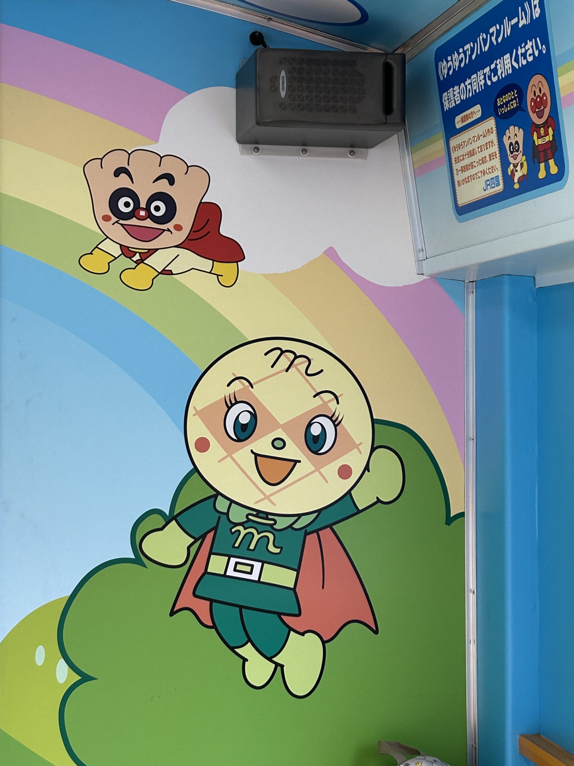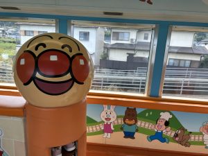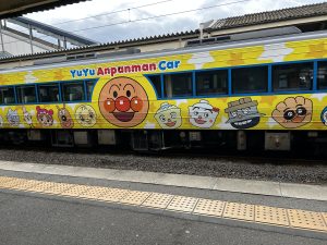 駅員さんに挨拶をして、改札をくぐると目の前にアンパンマン列車が!!!