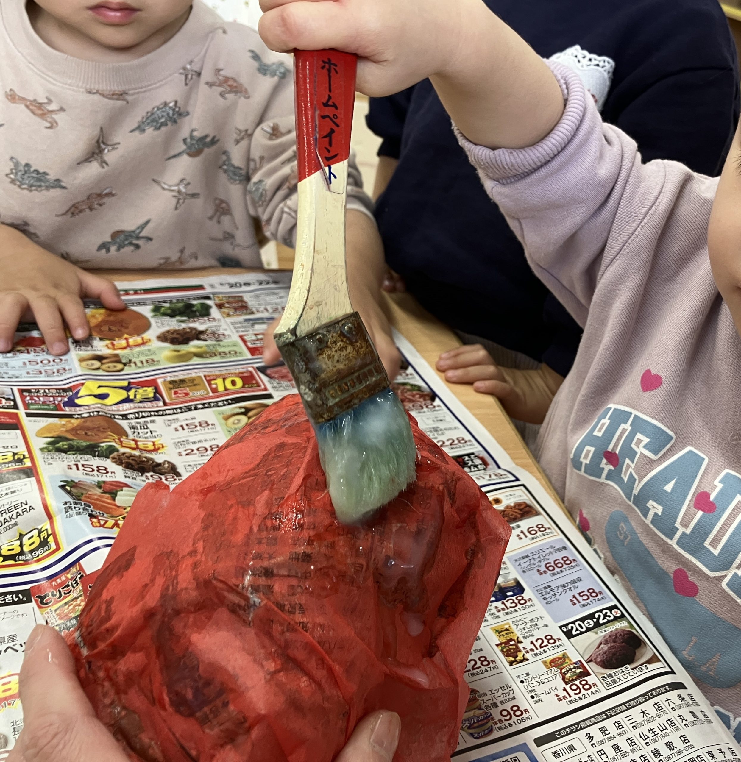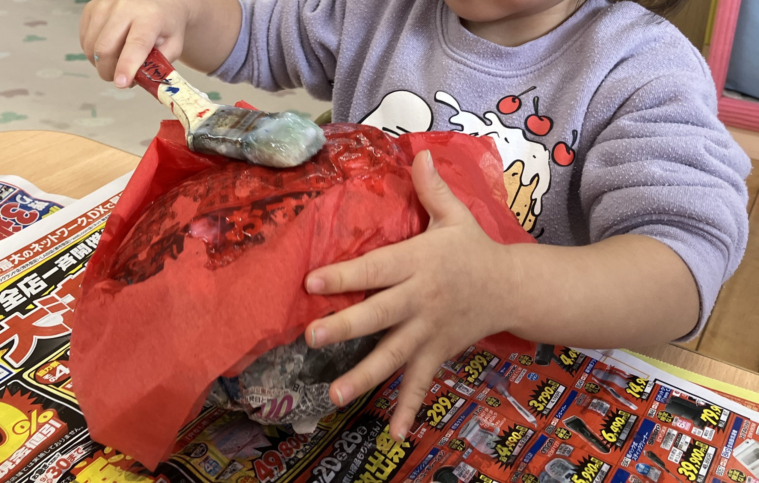 完成しただるまさんを見て「だるまさんが~」と体を揺らしている子もいましたよ(*^^*)