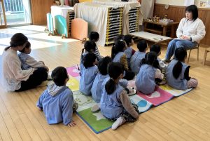 始める前に、どうして鬼が豆を怖がるようになったのか、保育者から節分の由来を素話で聞きました。