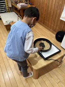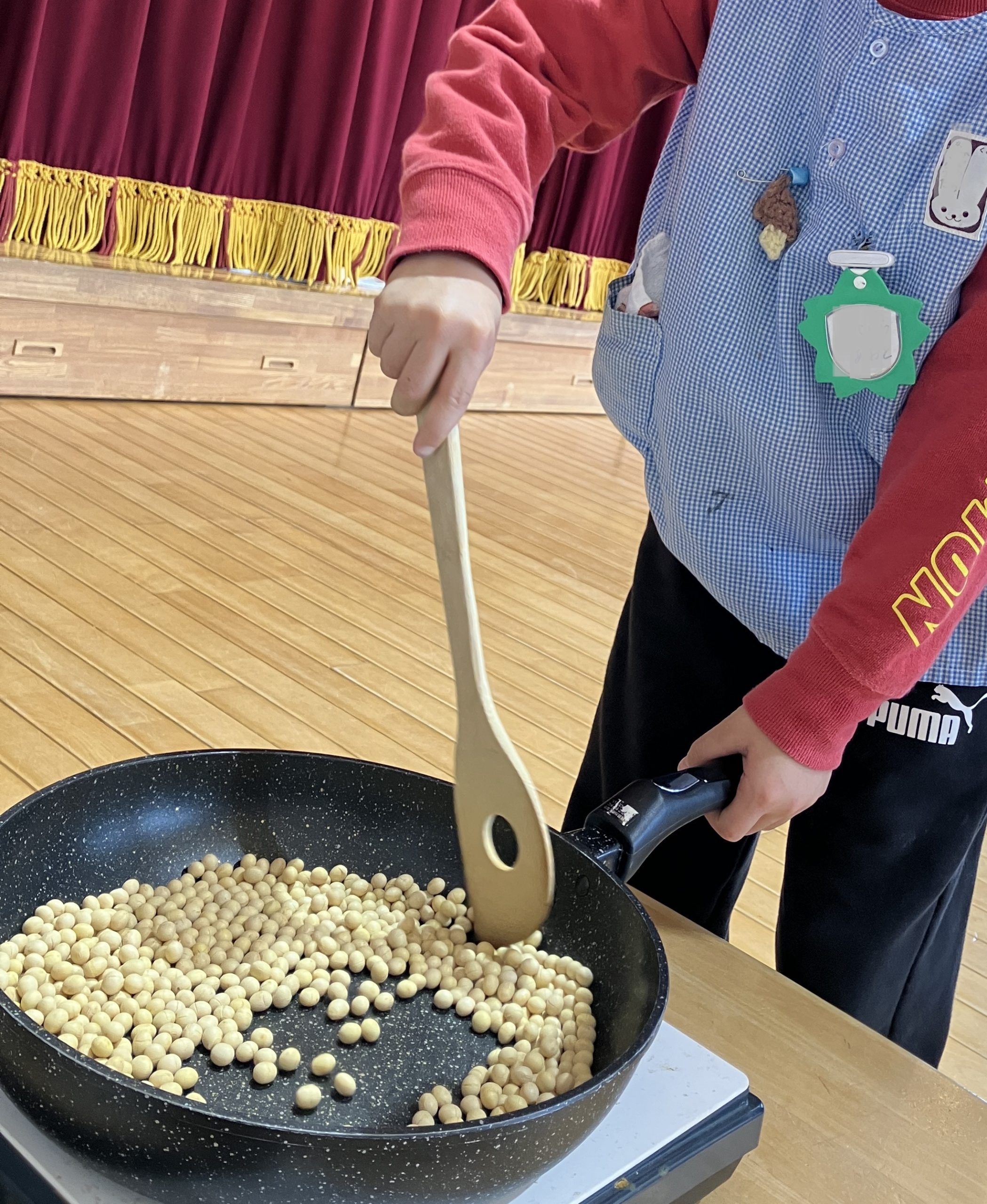 1月30日、年長さん達が節分の豆煎りを行いました。