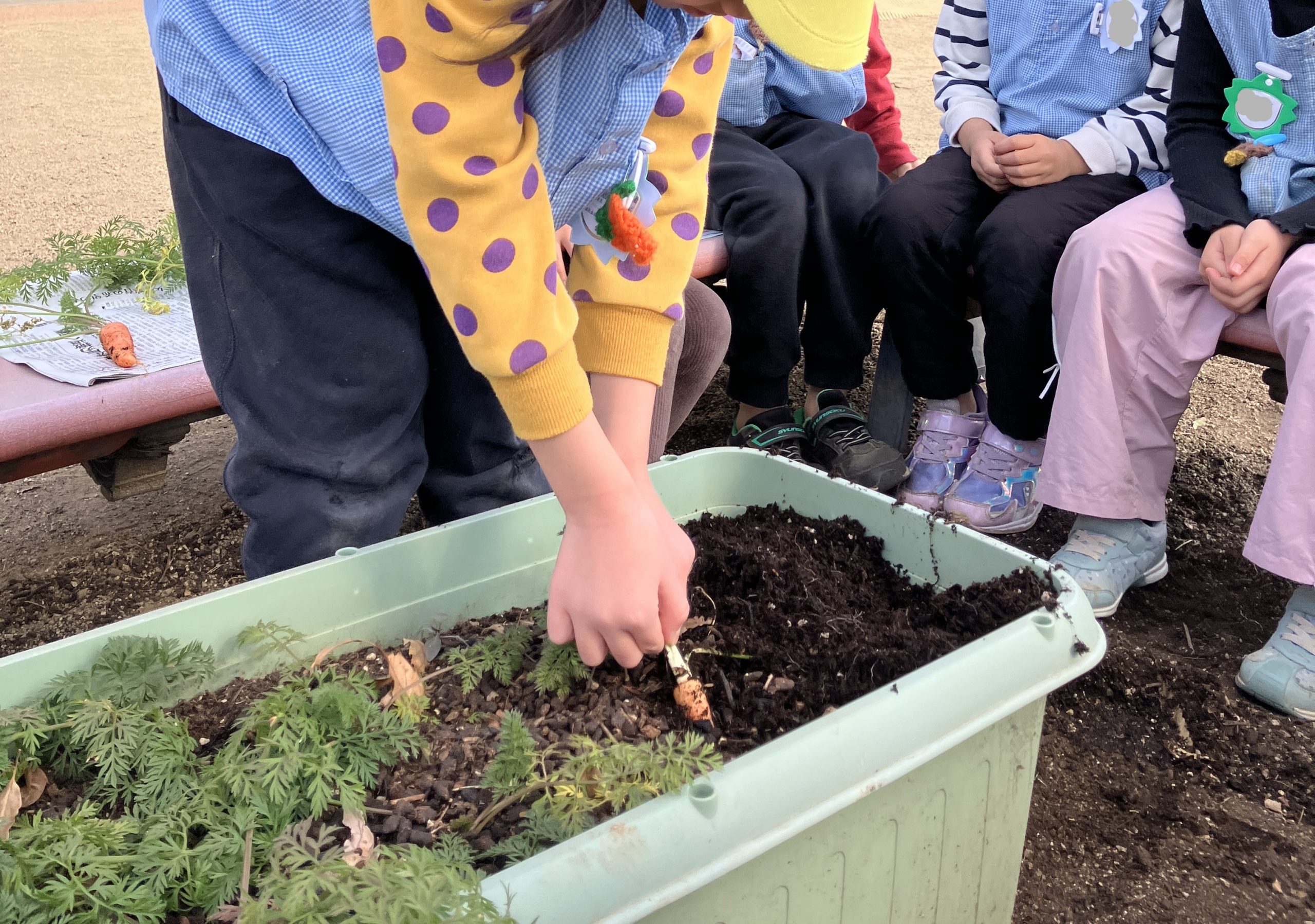 9月に年長さん達が植えた人参が、ようやく収穫時期を迎えました!