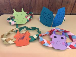 年長児は、毎年張り子のお面作りに挑戦しています。