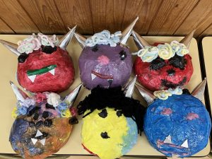 節分に向けて、各クラスで鬼のお面を製作しました。