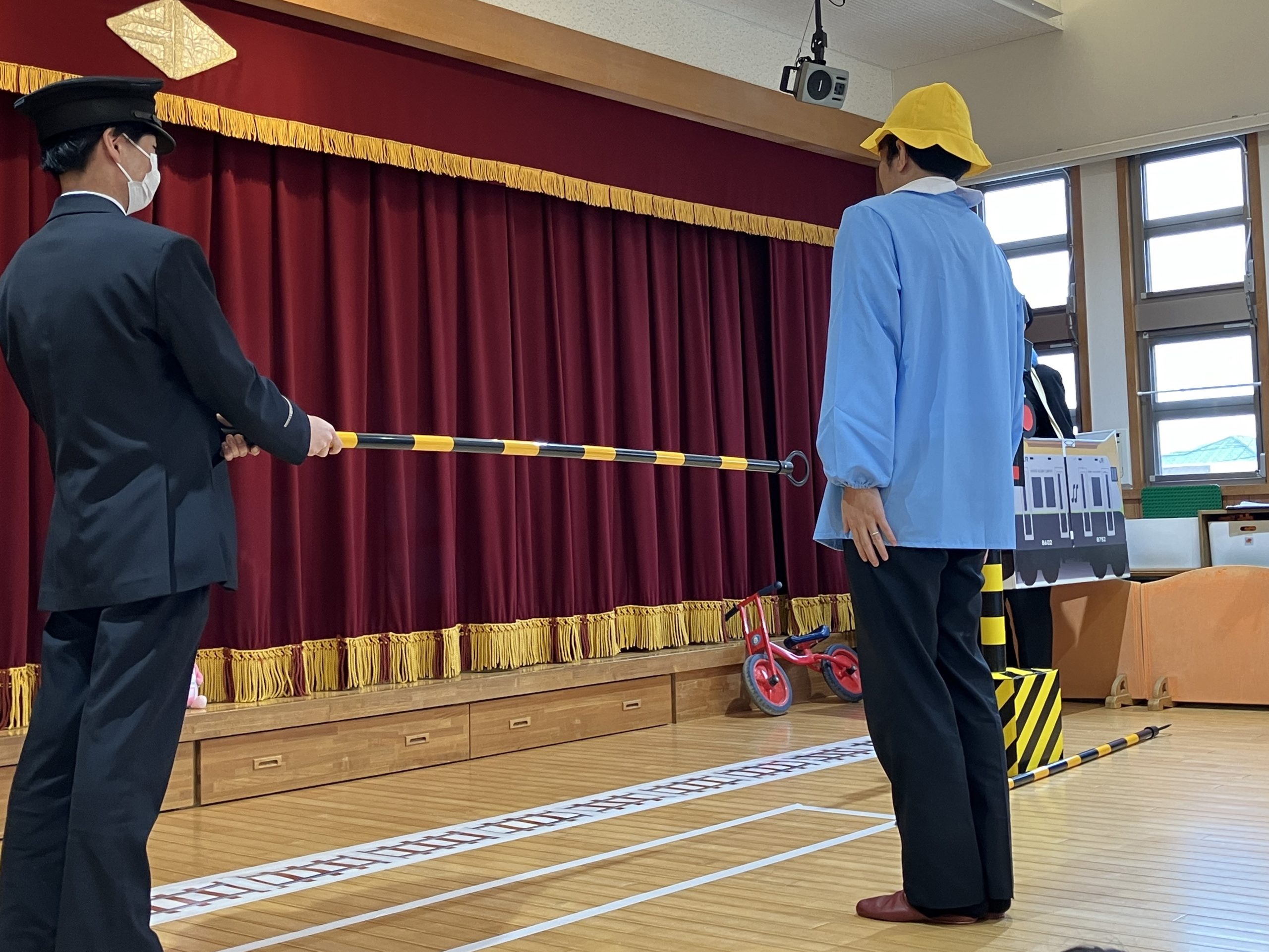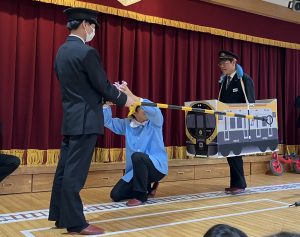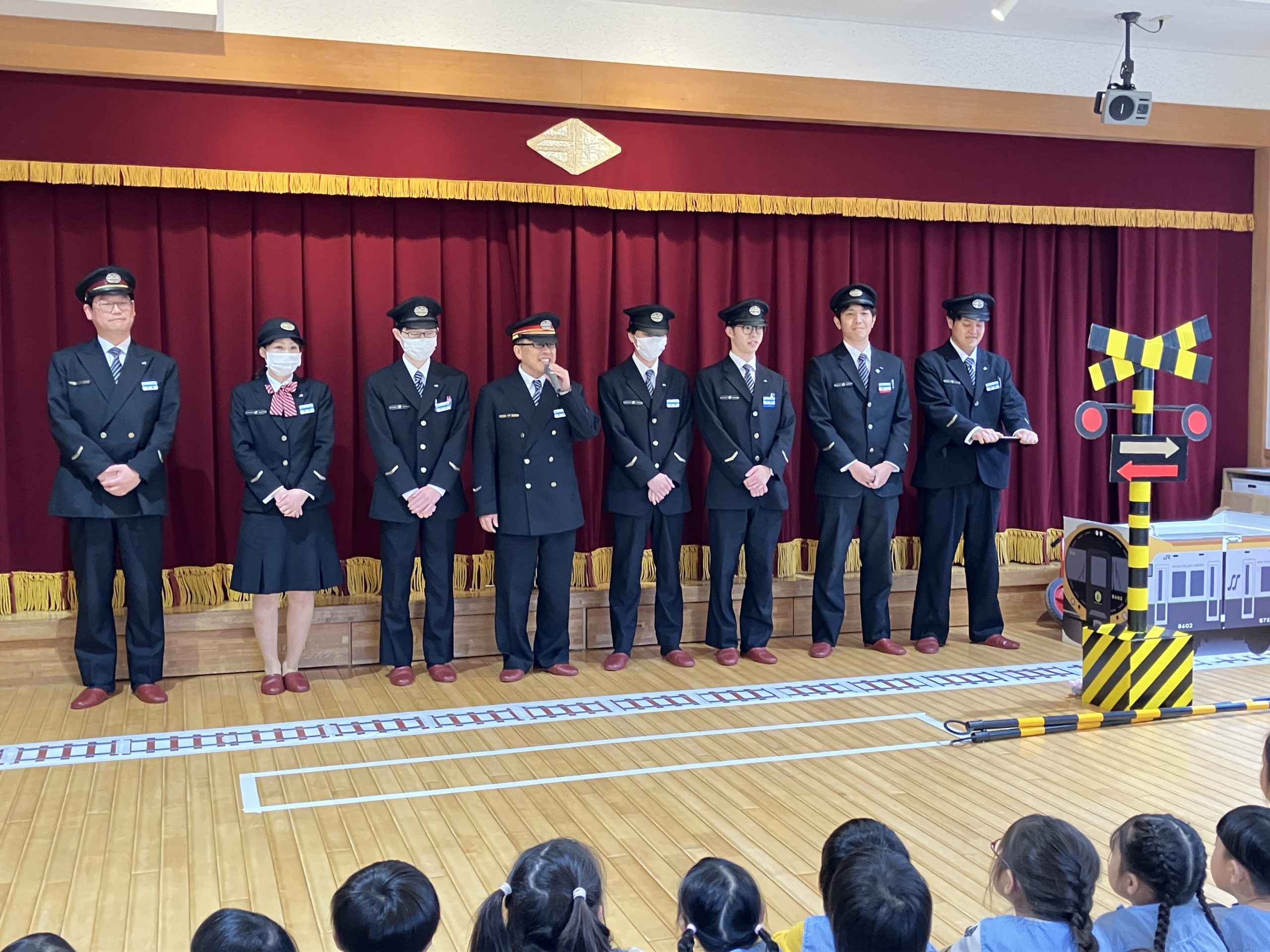 JRの駅員さん達が来園して、鉄道安全教室を行ってくれました。