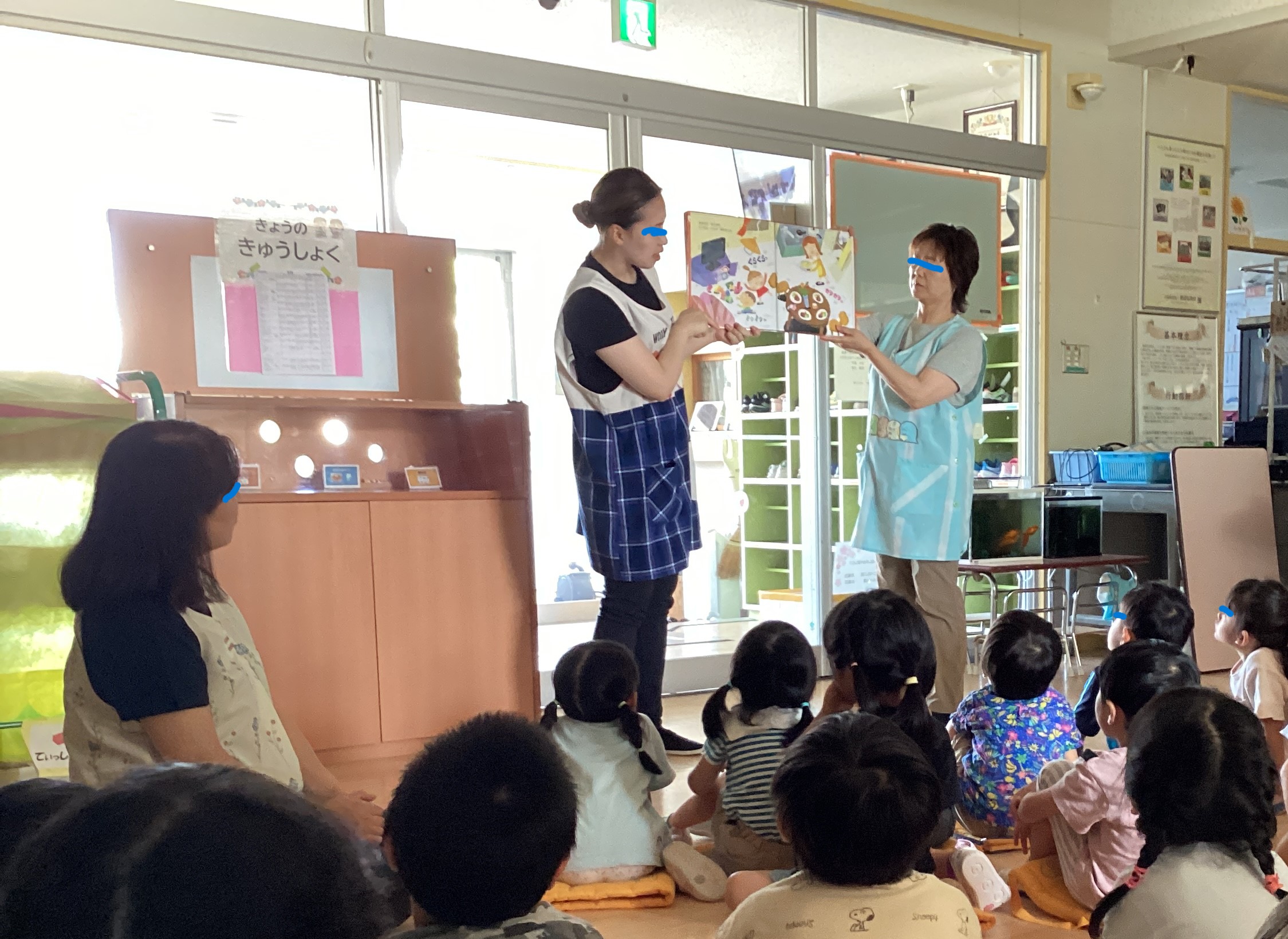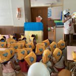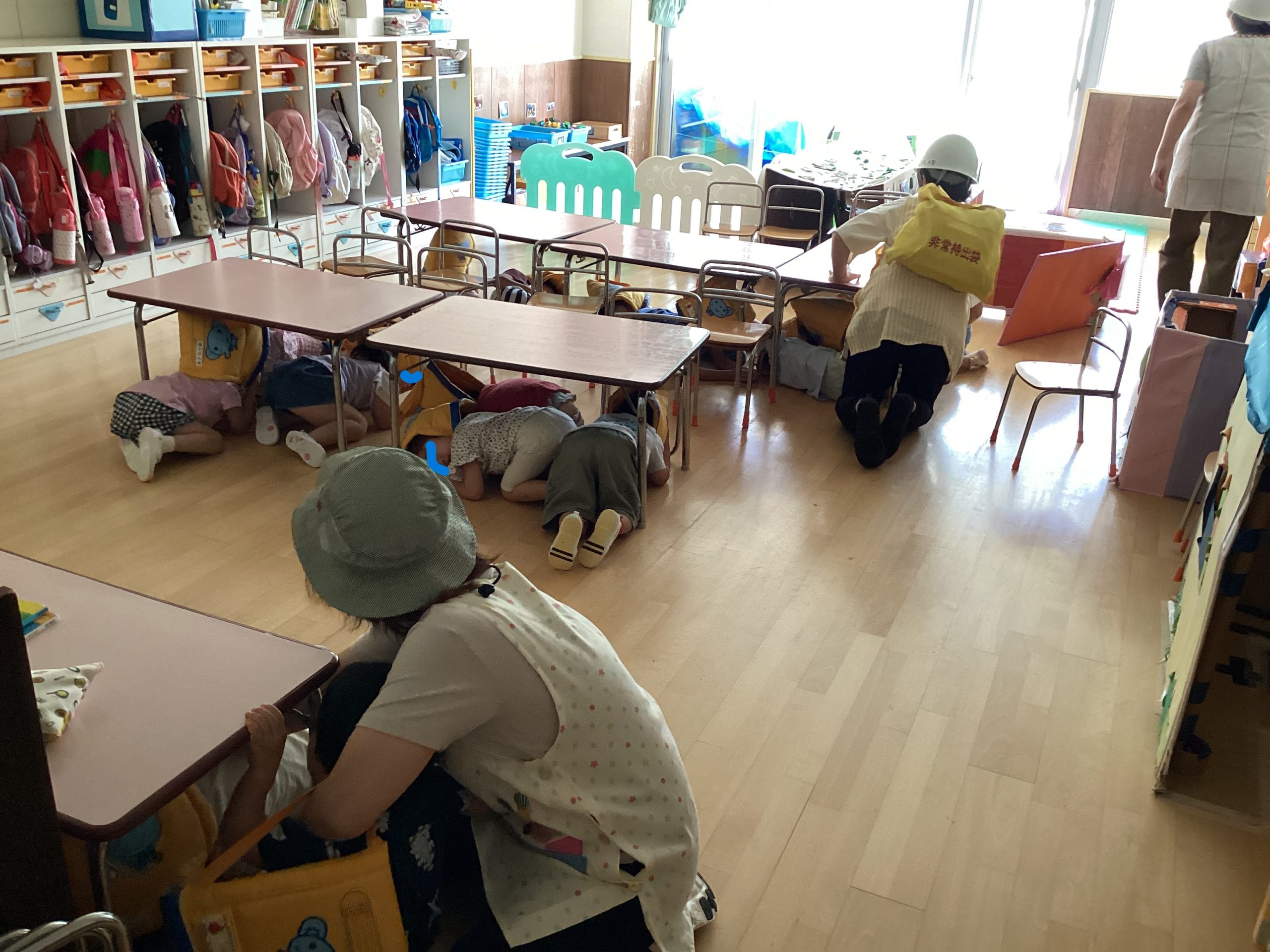 2・3歳児クラスでは、地震でグラグラ揺れている時の対応や避難の仕方について