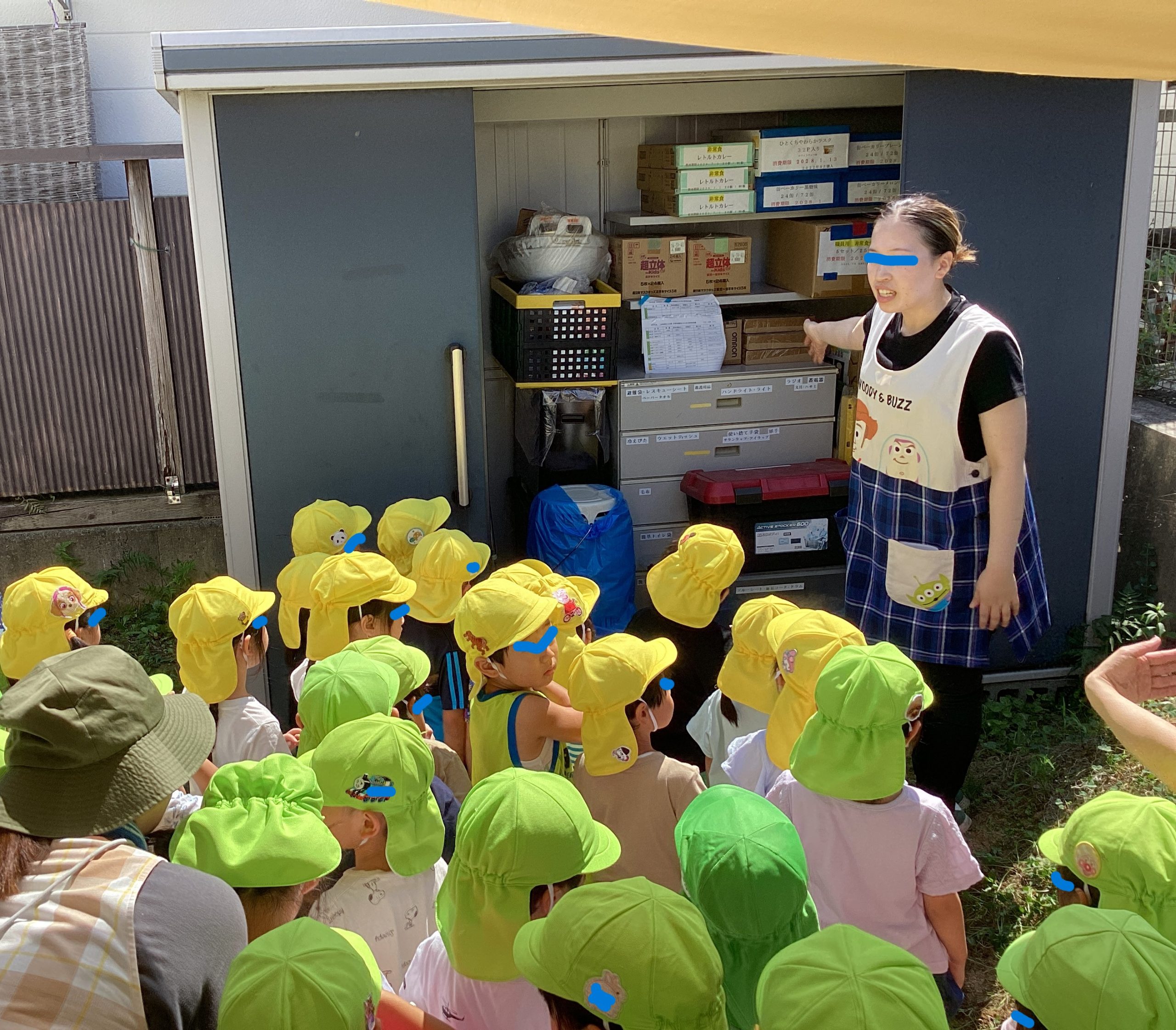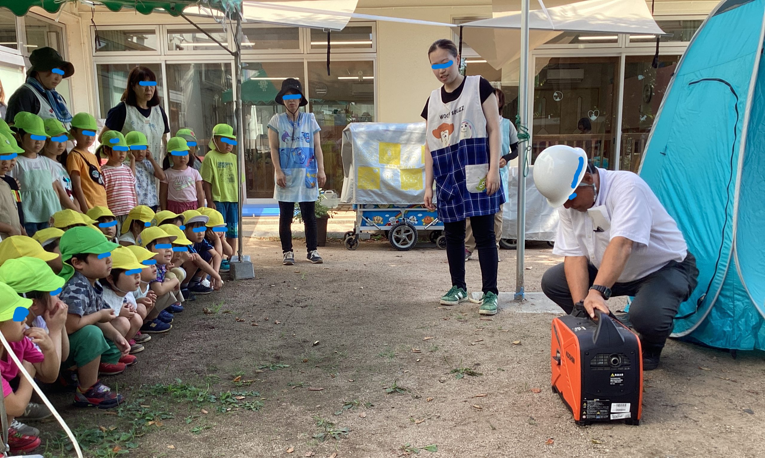 また、あすなろ園の備蓄倉庫を見学し、簡易トイレや発電機の実演を見学しました