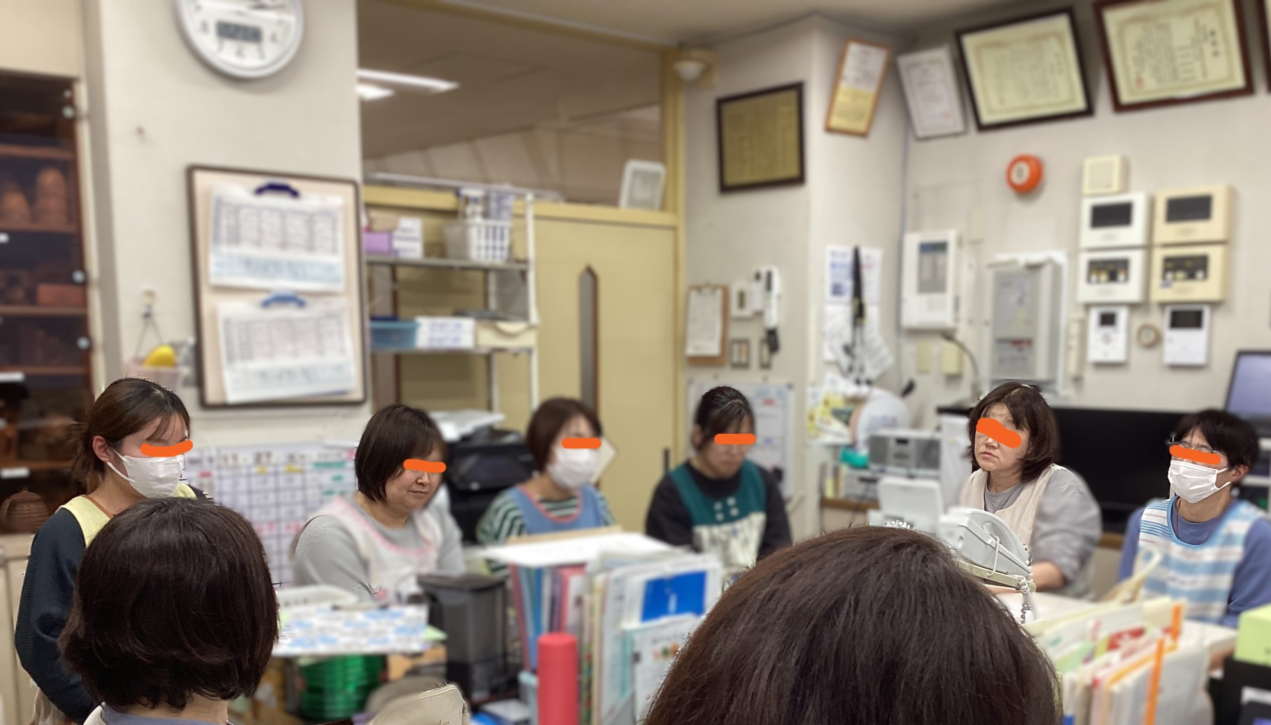 不審者対応訓練の終了後に職員で今回の対応について、振り返りを行いました。