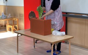 クッキングでは、年齢に合わせて野菜を観察・触れたり、ピーラーや包丁を使用して野菜を調理したりと楽しみました!子ども達も野菜の匂いや感触、切れ味などを感じ、興味を持って参加していました。