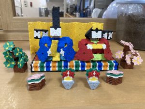 玄関には青帽子さんが作ったラキューひな人形が飾られました!