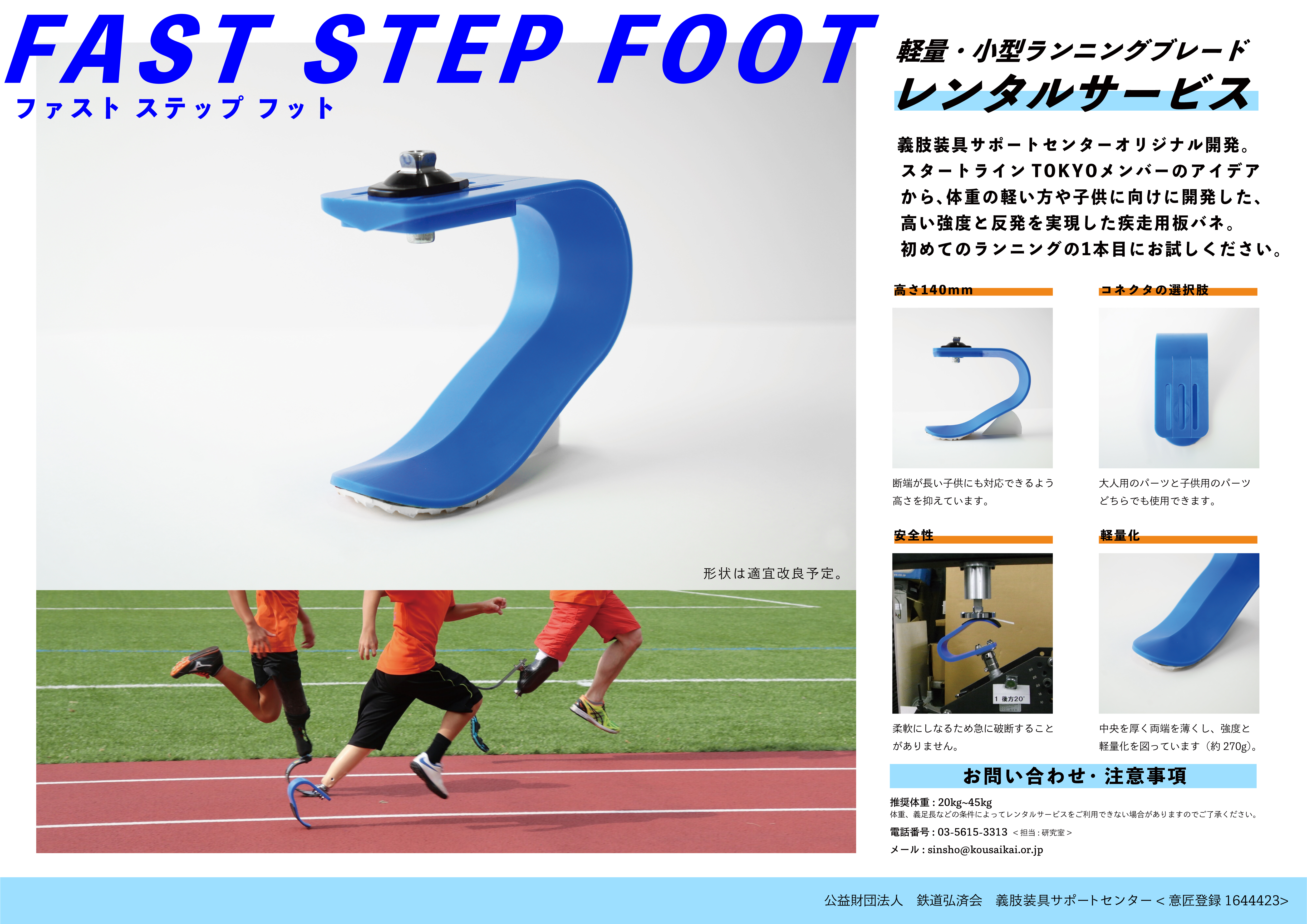 今回の体験では、義肢装具サポートセンターが開発したナイロン式板バネ義足『FAST STEP FOOT』を使用。