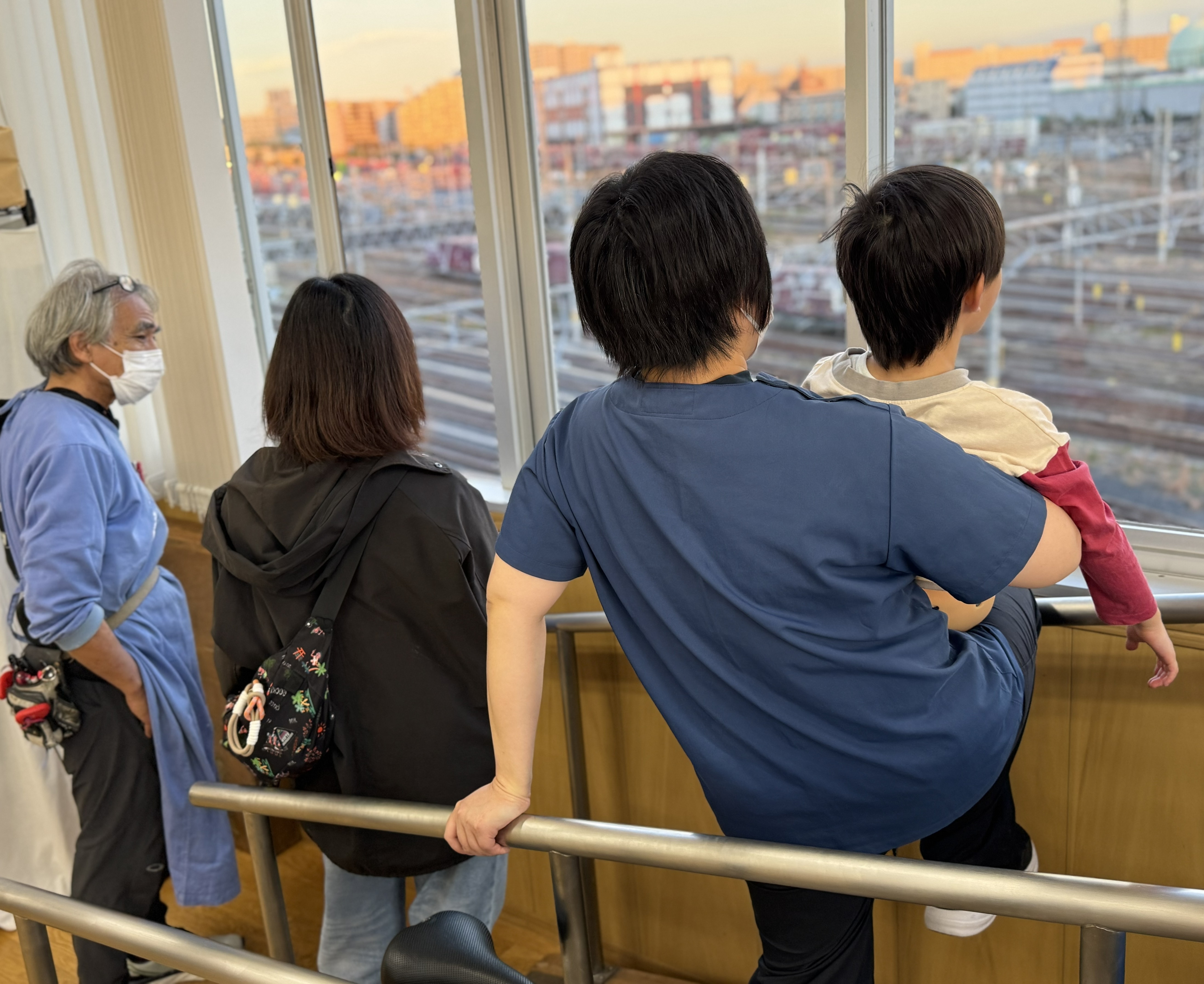 窓の外を走る貨物列車を見つけては目を輝かせ、